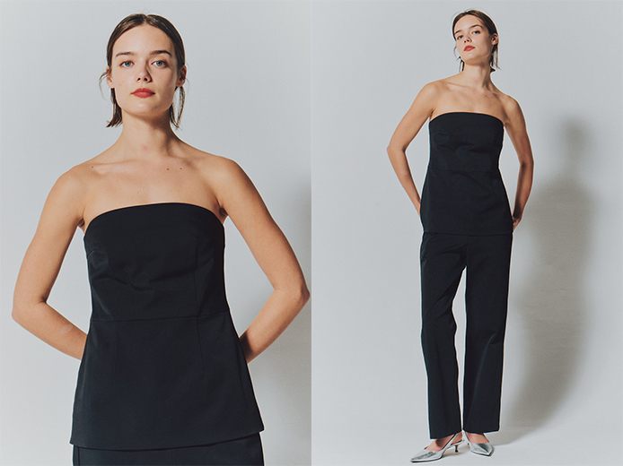 涼やかで大人ヘルシーな着こなしにシフトするベアトップス。ウエストから腰にかけての切り替えデザインがウエストをすっきり魅せてくれる。華奢なストラップとセンシュアルな肌みせが女性らしさをアップ。1枚でもインナーにも使えるほか、エレガンスにもスポーティにも決まるアイテム。