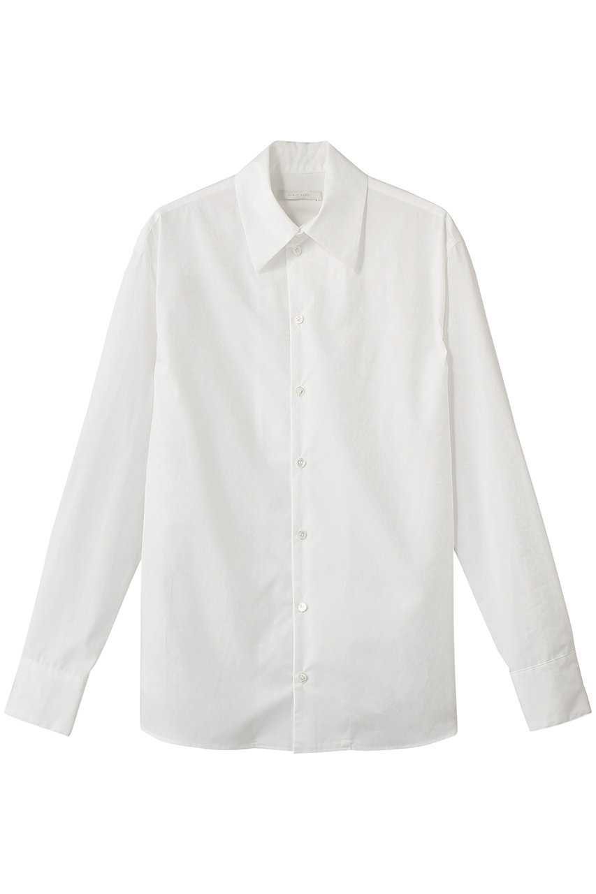 メンズライクなシャツには大胆なアプローチを採用。背面ヨーク下をレースへ切り替えることで、フロントとバックで印象が変化するデザインを実現しました。動きや角度によって異なる表情を見せる、奥行きのある仕上がりです。