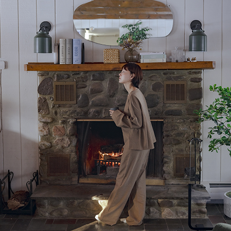「アドリン ヒュー」ディレクター安部真理子さんが手がけるホームウェアがニューリリース。インド・ジャイプールの伝統工芸、ブロックプリントは、職人が1枚1枚、木版を使って色と柄を重ねて仕上げています。オリジナルの木版を制作した柄というのも、他にはない魅力。ブロックプリント特有の、和やかでラフな色合いとオーガニックコットンの風合いが心地よく、外着としても、リラックスウェアとしてもお楽しみいただけます。また、売上の一部をインドでの雇用創出のため、生産工場に還元している取り組みにも注目を。
