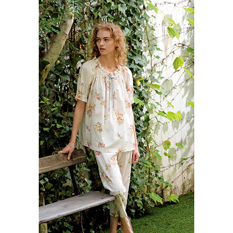 IKUKO シングルガーゼ花柄プリント パフスリーブパジャマ ¥20,900
