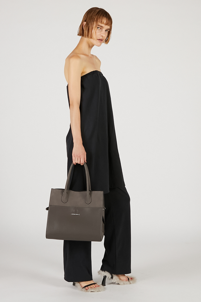大人のデイリーにふさわしい、程よく大きめのトートバッグ。内装のサイド留め具を活用することで、まとめて収納も開放感ある表情も叶える“2WAY仕様”が魅力。シックなブラックのシボ合皮、落ち感あるスエードタッチのグレー&ブラウンなど、カラーごとに異なる素材感が秋の装いに寄り添いながら、表情豊かに演出します。A4サイズ対応でPCも収納できる収納力も備えた、機能美とスタイルを兼ね備えたバッグです。