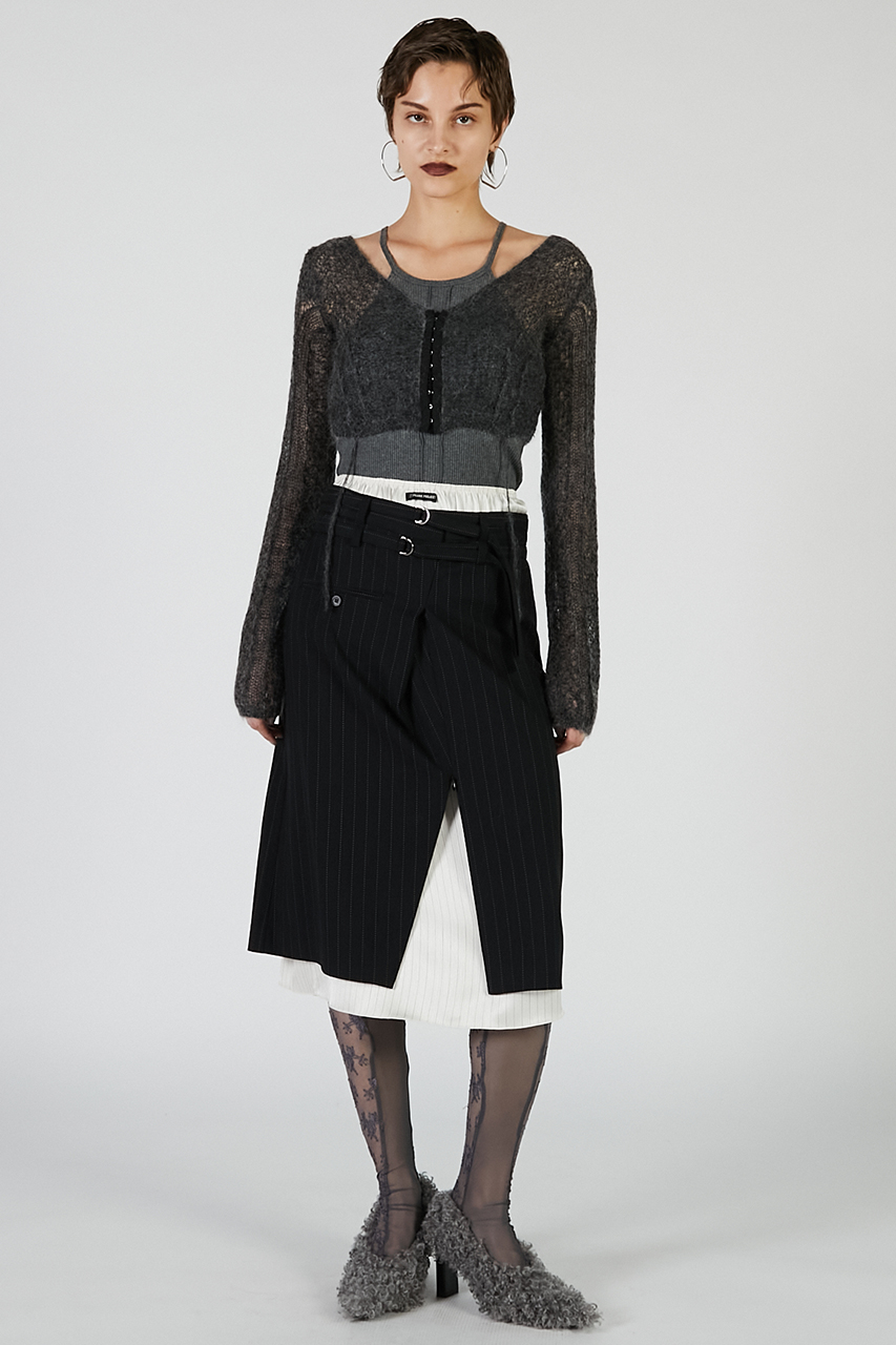 華奢なストラップによるヌーディな見た目と、ふわりと足を包むファーの中敷き。夏に映える涼しさはそのままに、あえて秋冬に取り入れることで、ソックスとのコーディネートで新しい表情に。モードなバックル使いとナチュラルな素材感のコントラストが、日常にちょっとした特別感を添えてくれる一足。