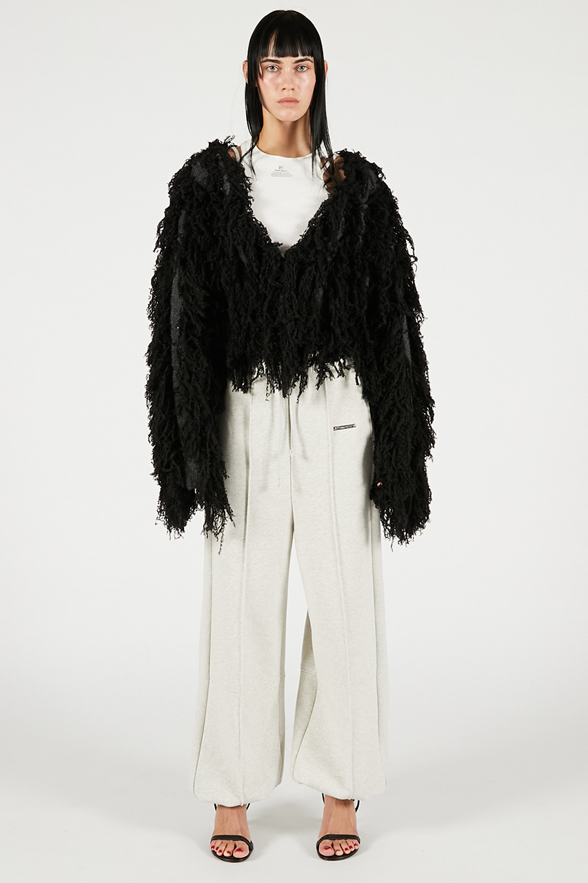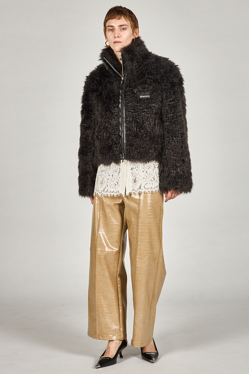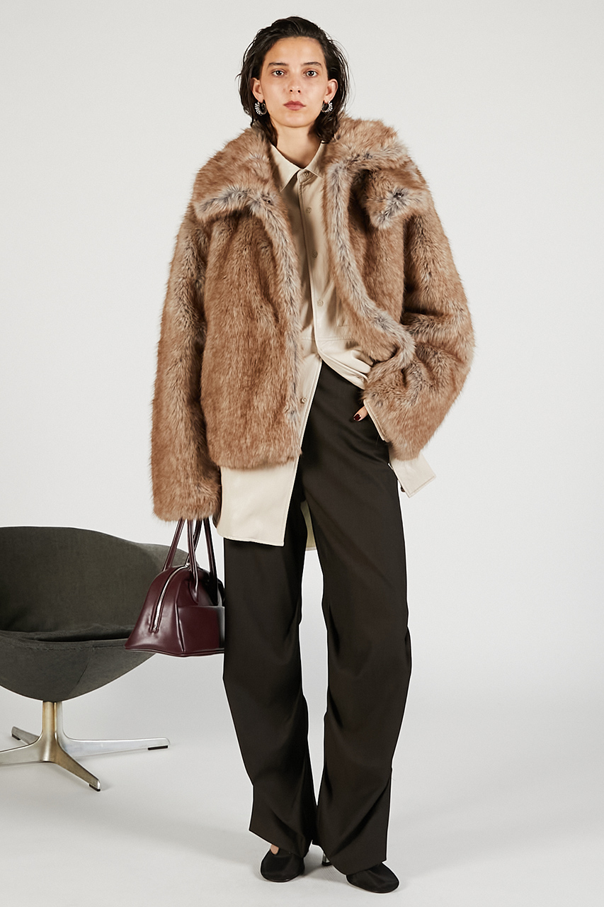 一見リッチな見た目ながら、軽量で滑らかな長毛フェイクファーを採用し、着心地も抜群。裏地にはレーヨン混素材を使用し、肌触りと着用のしやすさを両立しました。FREEサイズでしっかりゆとりがありつつ、絶妙な丈感がバランスよくきまります。