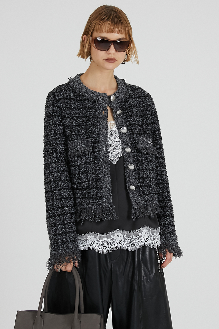 軽やかで温かみのあるツイード素材が魅力のTweed Knit Cardigan。秋口から初冬まで長く活躍する1枚で、ジャケット代わりにも羽織れるデザインです。柔らかい素材ならではのフィット感で、肩回りも自然に動きやすく、リラックスした着ここちが楽しめます。
