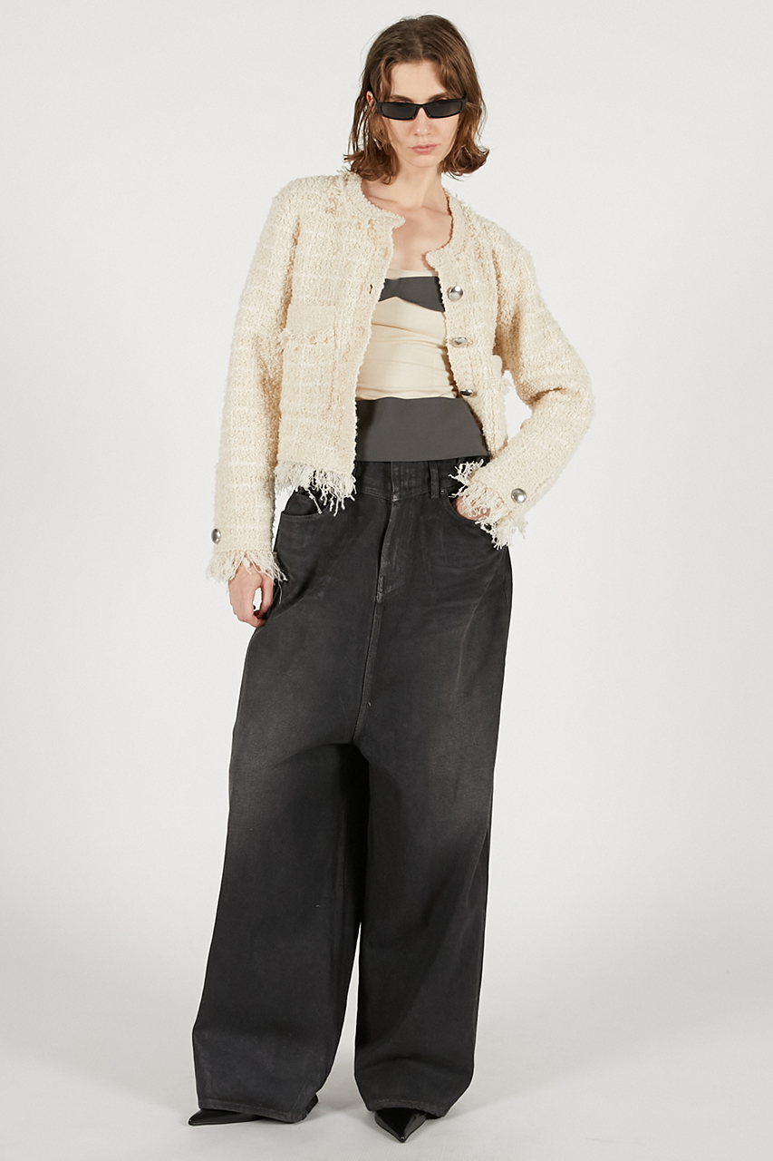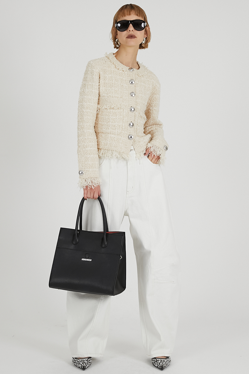 素材にもこだわりが。BLK/GRYはハリと膨らみのあるダブルクロス素材を使用し、立体的なシルエットを演出。WHTは凹凸感のあるネップツイードで、着こなしに表情をプラス。裏地もついているので、軽やかでありながら快適な着心地です。