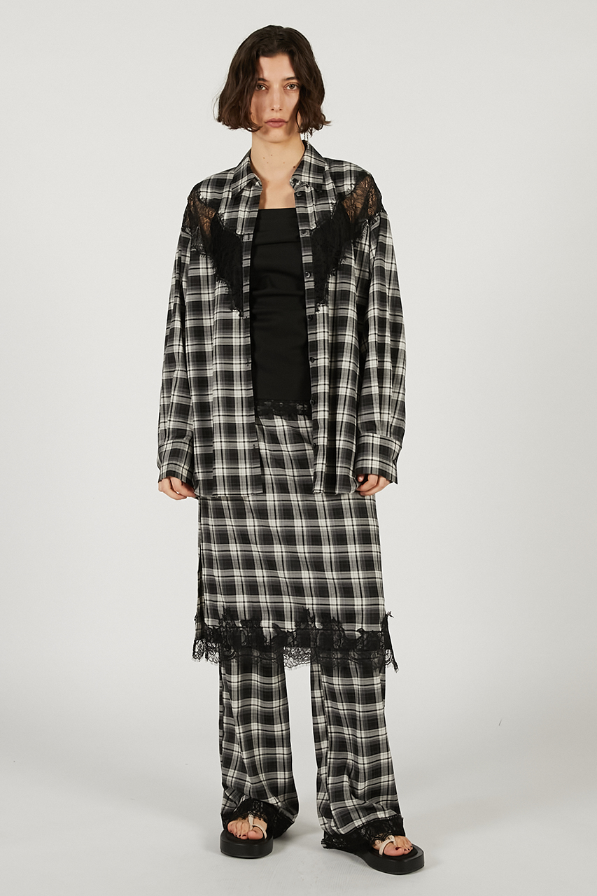 レースをあしらったフェミニンなムード漂う2WAYパンツ。スカートとパンツはそれぞれ単体でも着用でき、スカートをベアトップ風に重ねればオールインワンのような着こなしも楽しめる。ウエストはゴム仕様でストレスフリー、イージーケアなのも嬉しいポイント。着回し力が高く、日常使いから旅行まで幅広く活躍。ジャケットやブルゾン、ニット、スウェットなどオーバーサイズトップスとも好相性。素材は、無地はテンセルナイロン、チェックはレーヨン混ポリエステルを使用し、いずれもドライタッチで軽やかな着心地。