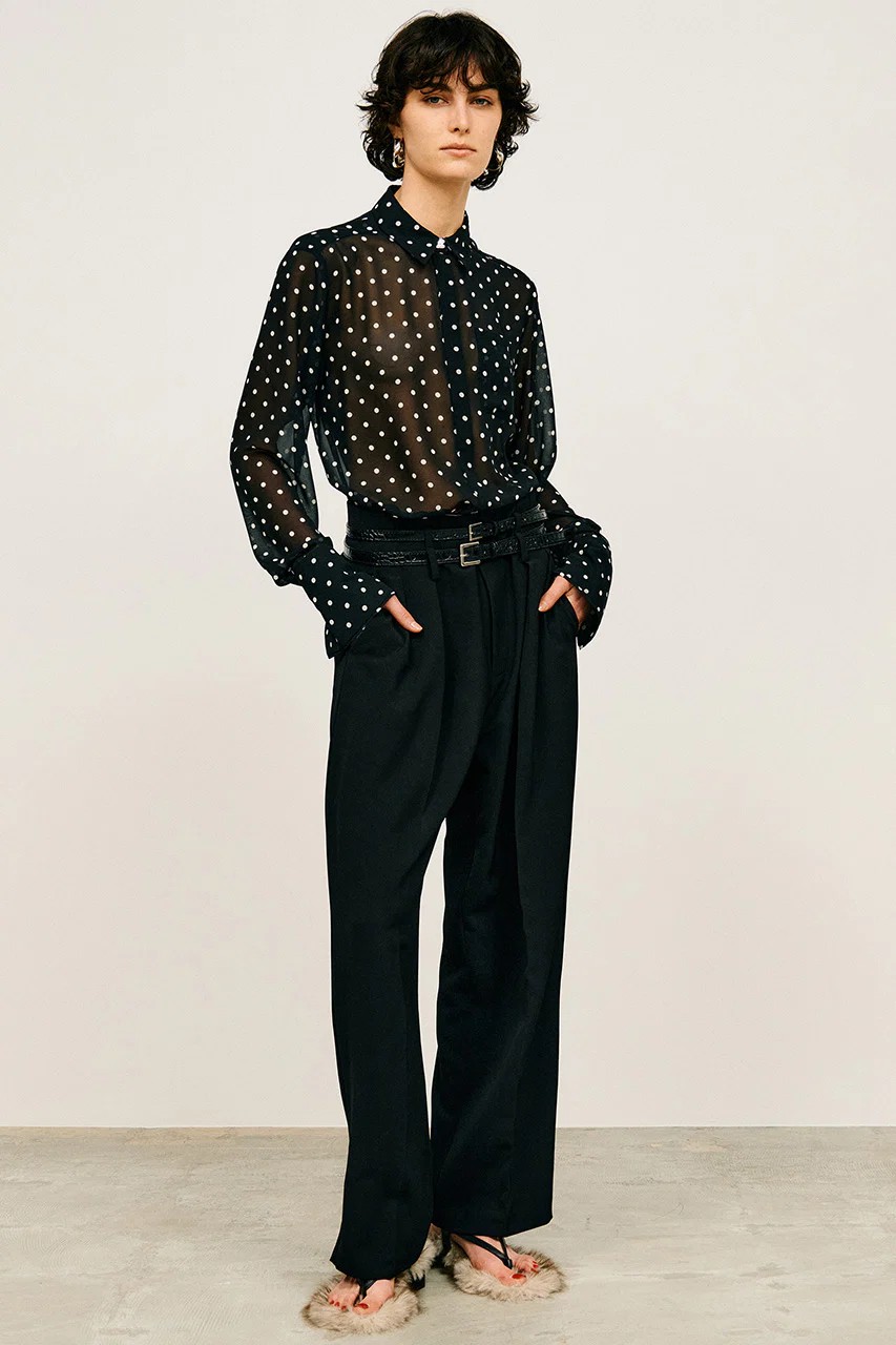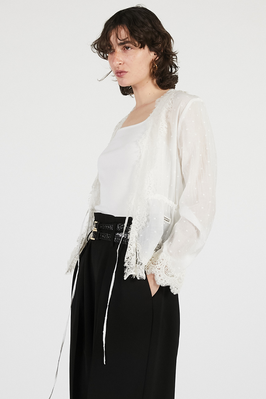インパクトのあるデザインながらカジュアルなカットソー、フェミニンなブラウスなど意外にもどんなテイストにもマッチする汎用性の高い一着。