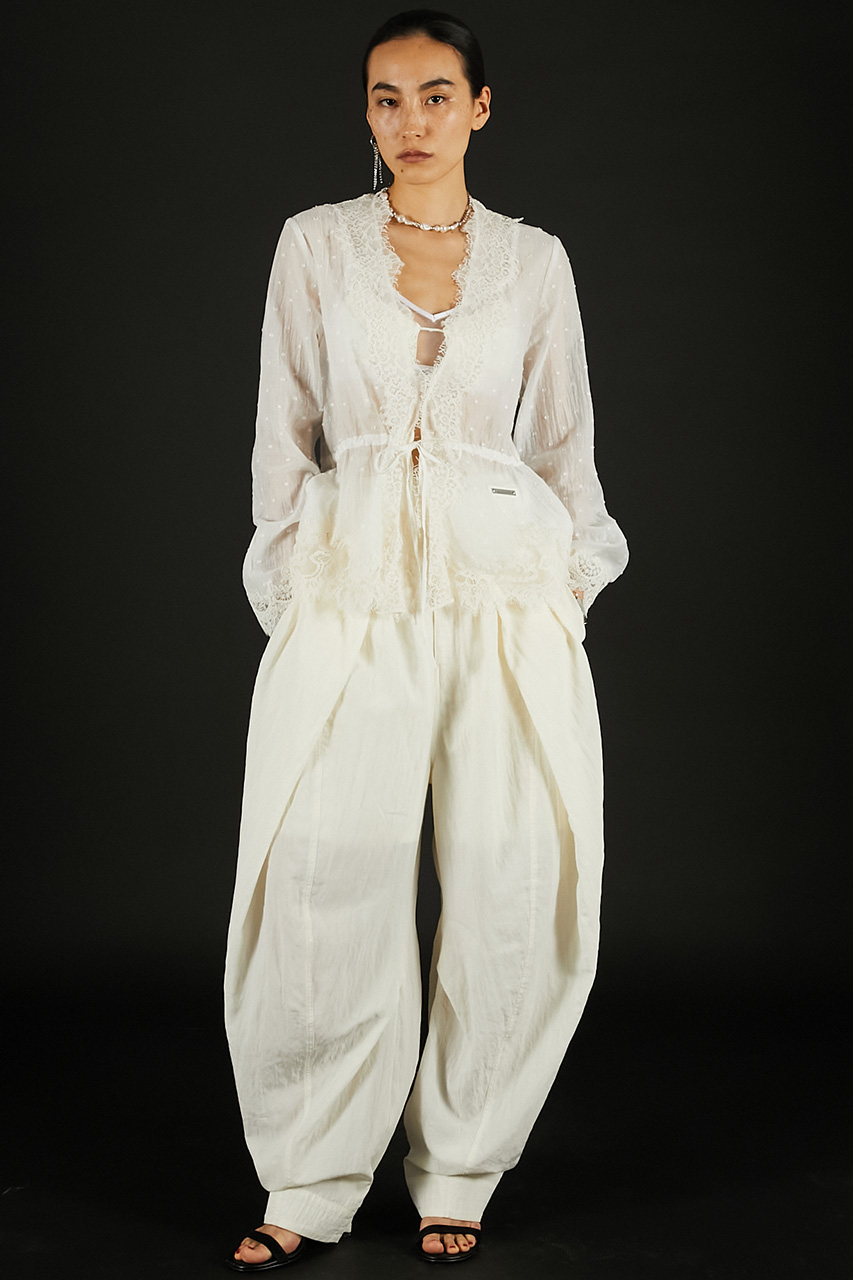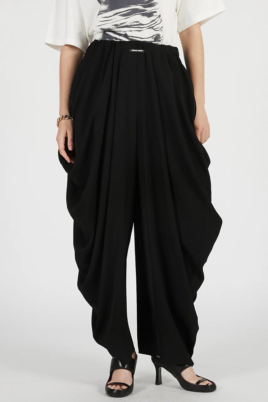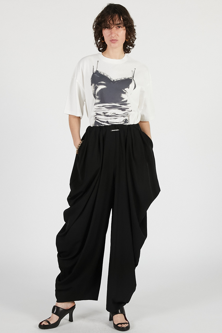 モード感を演出できるドレープパンツ。
