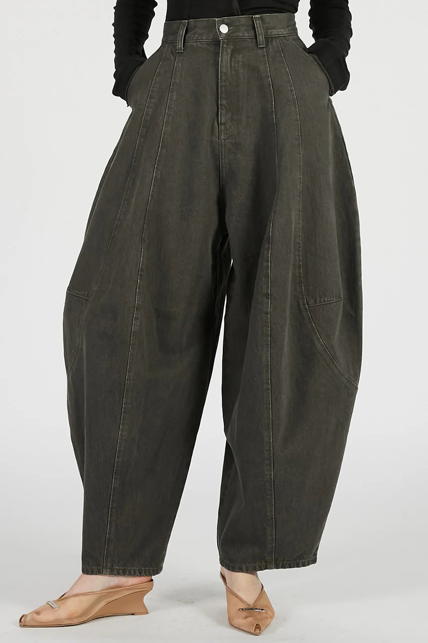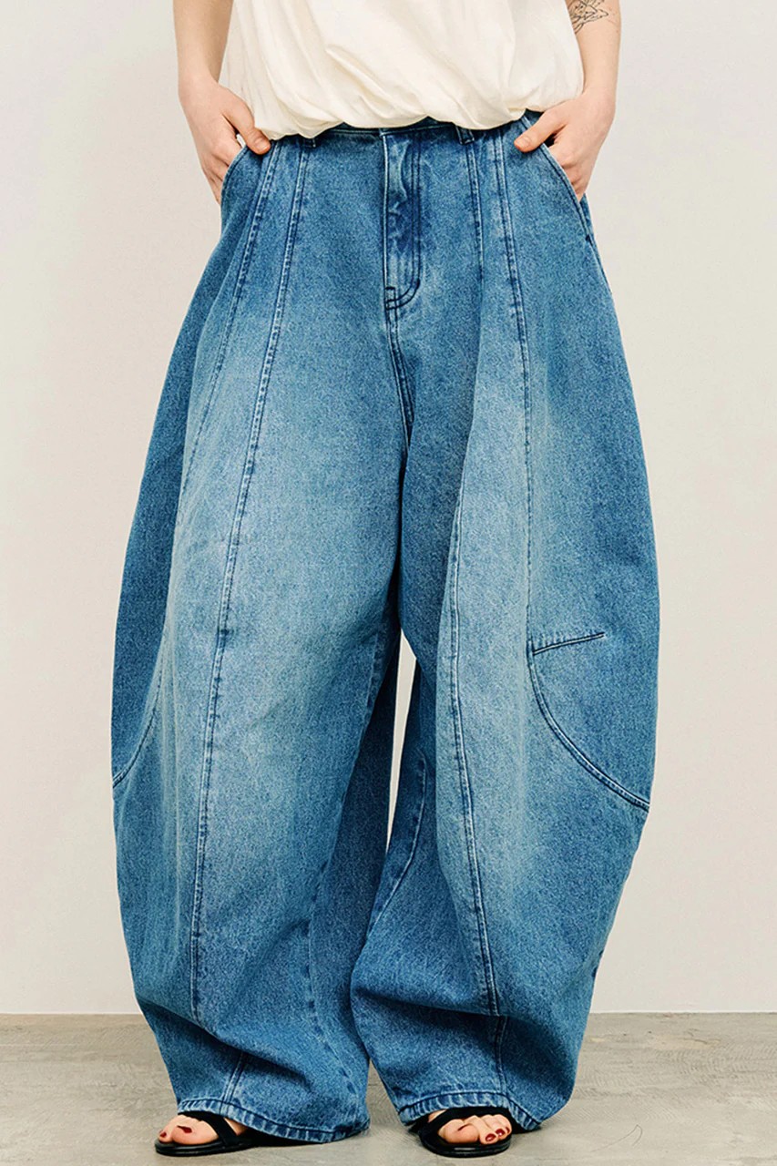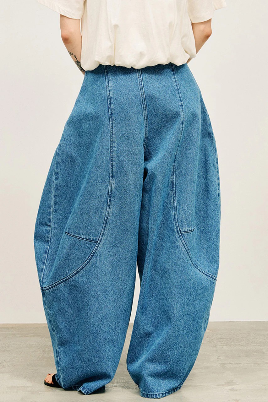 大胆なフォルムが印象的なコクーンデニムパンツ。