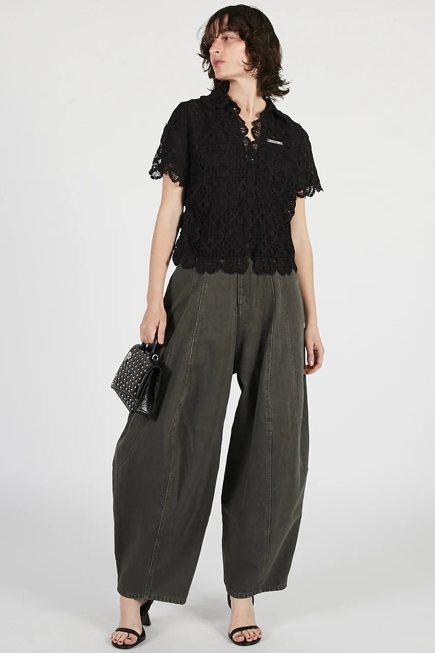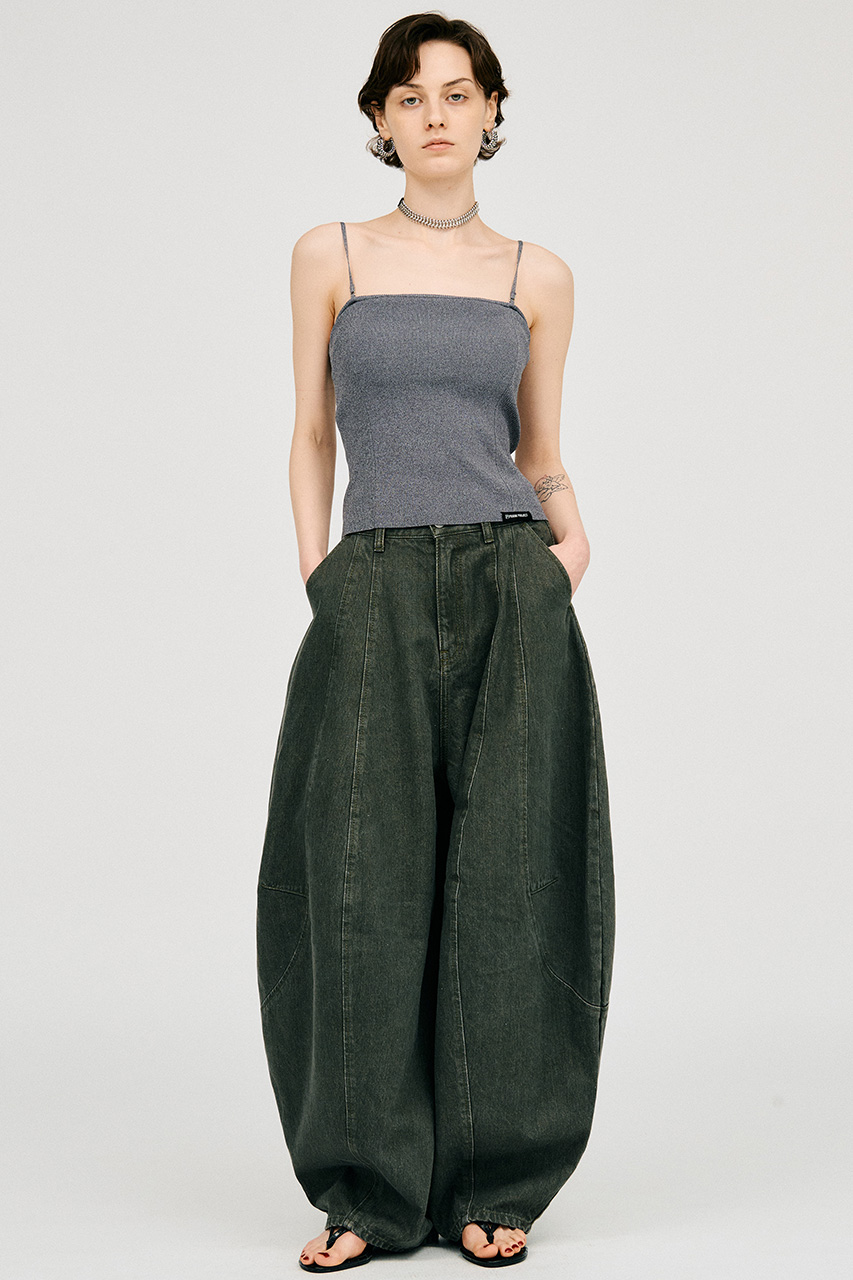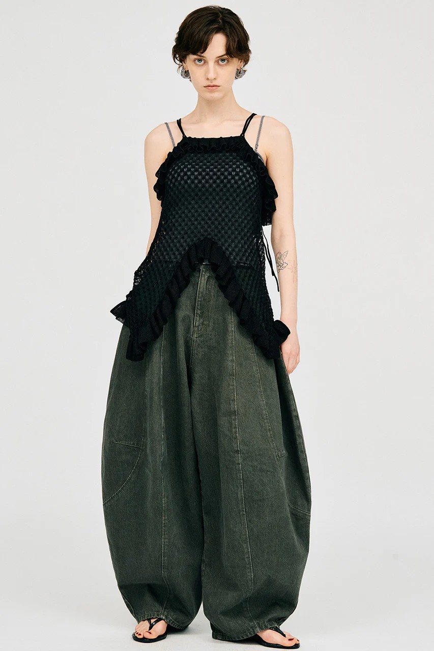 大胆なフォルムが印象的なコクーンデニムパンツ。