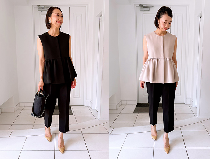 オールシーズン使えるジレは、ワードローブの主力選手。「コルコバード」のペプラムジレは、プラスするだけでいつもの着こなしをフェミニンにアップデートしてくれます。今季トレンドのベージュor王道ブラック、どちらがお好みですか?