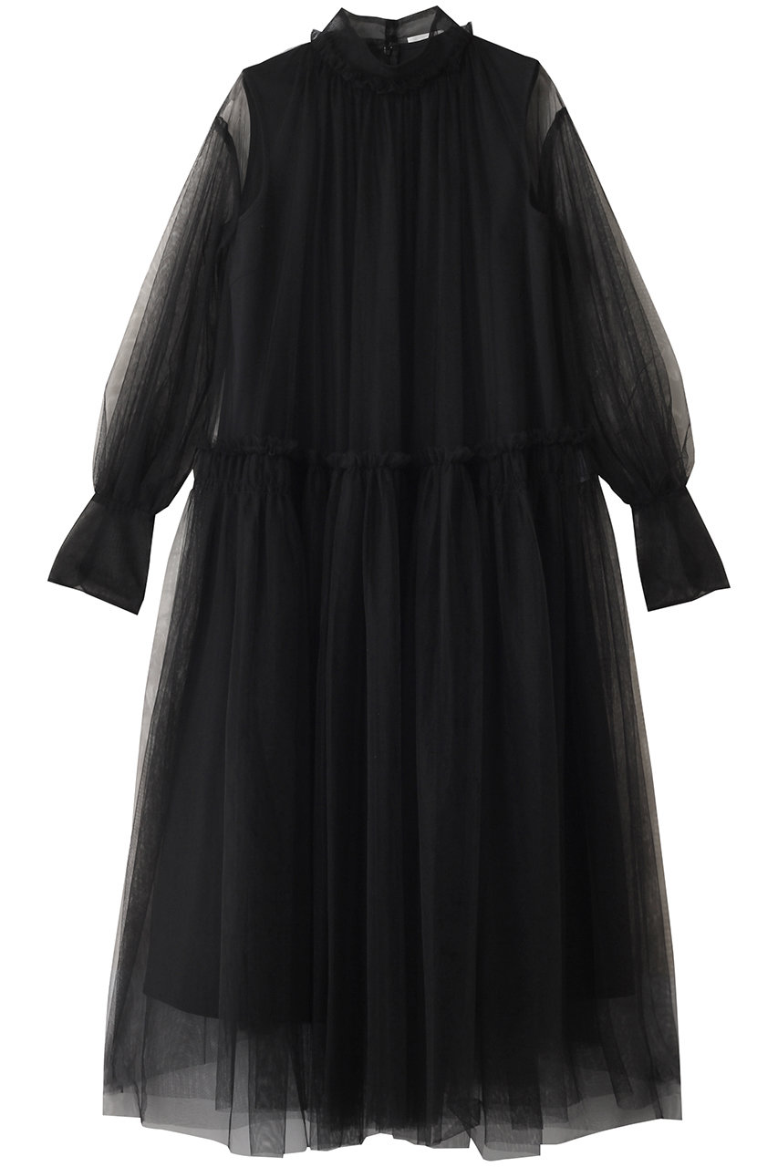 纏うだけでドレッシーな雰囲気とモード感を加速するワンピース。甘くなりがちなチュールも、計算されたシルエットバランスでモードに昇華。繊細な透け感がセンシュアルな魅力をぐっと高めて。シンプルなインナー付きだからコーディネートにも悩まないのがうれしい。