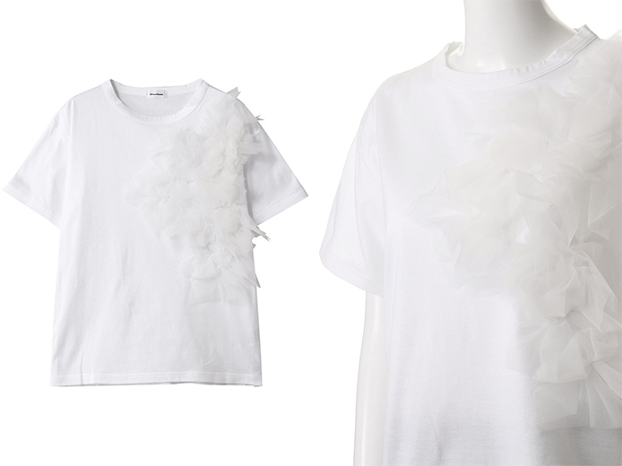 ラフに纏えるカットソーを「チカ キサダ」がエレガンスにアップデート。アシンメトリーにあしらったチュールがニュアンス感とドレッシーな雰囲気を誘い、主役顔にシフト。フォルムやカラーはシンプルにまとめ、ボトム合わせもしやすい1枚に。着るだけでデイリールックに新風を届けてくれそう。