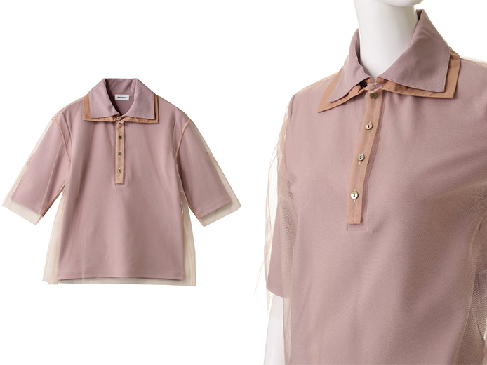 上品な印象の襟付きプルオーバーにドレッシーなチュールをデコレーション。チュール部分は取り外しが可能で、シンプルなトップスとしてもアレンジが楽しめる。程よくボディに寄り添うシルエットとハリのあるきれいめな素材が大人のスタイリングに◎。華やぐフレアスカートからマニッシュなパンツまで着こなし方はあなた次第。