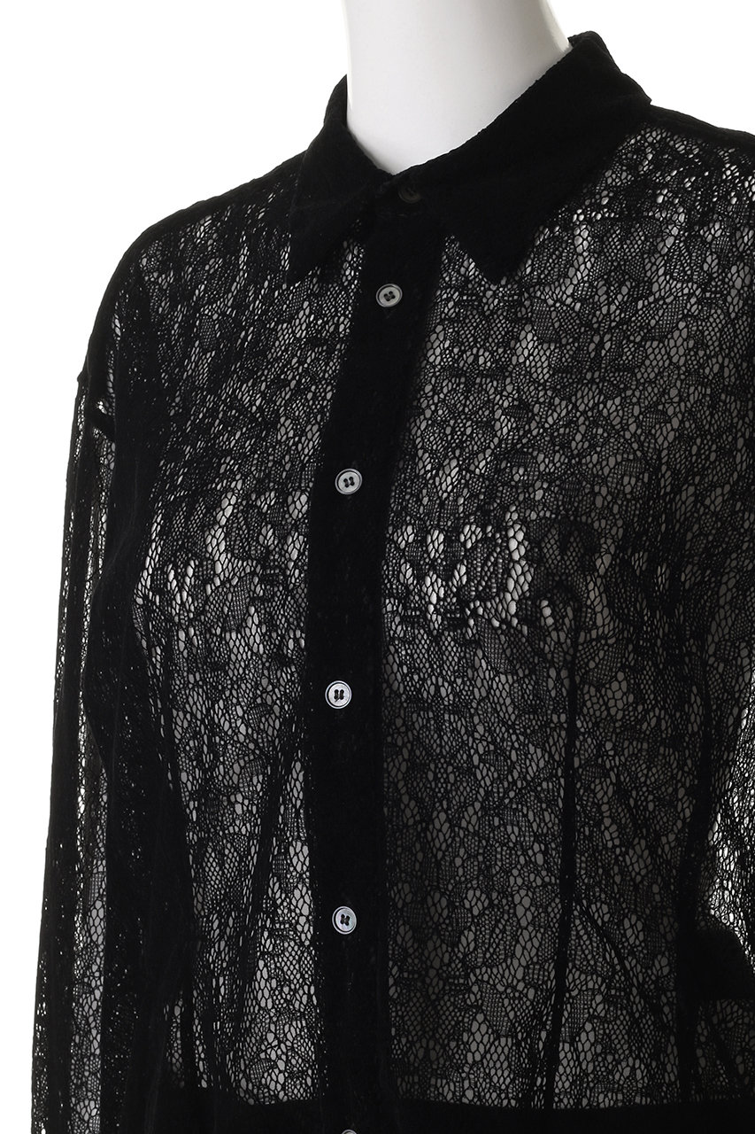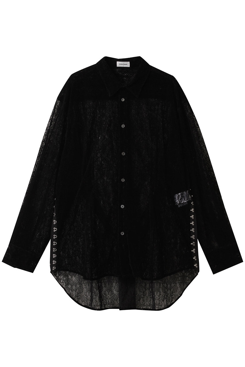 センシュアルな透け感を持つ総柄の美しいレースが大人の気品とエレガンスなムードを奏でるシャツをセレクト。襟や前立てはクリーンな無地素材で切り替え、ミニマルな印象に。アクセントとなるサイドのフックでシルエットの変化を楽しむのも◎。合わせるシーンを選ばず、メインとしてもライトな羽織りとしてもロングシーズン着まわしに活躍する予感。