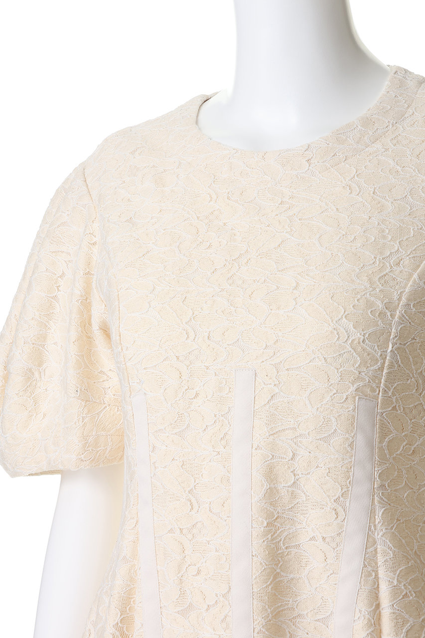 女心を射止めるドレッシーなドレスが登場。裾にかけてふわっと広がるフェミニンなシルエットとボリューム袖がロマンチックムード満点。全体にあしらった繊細なレースデザインが気品と優雅なムードを放ち、オケージョンやおよばれの大本命にぴったり。