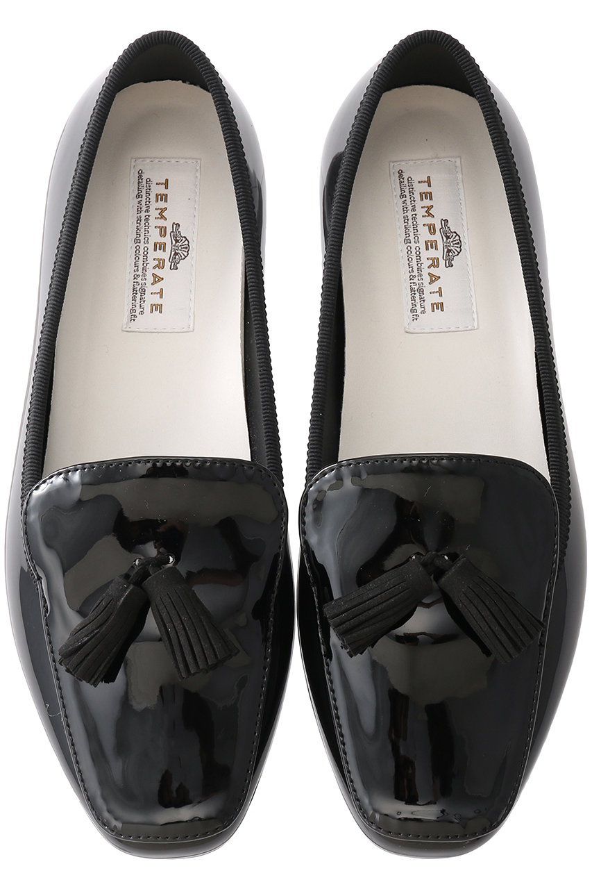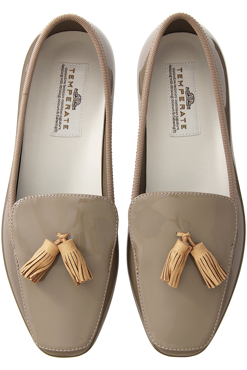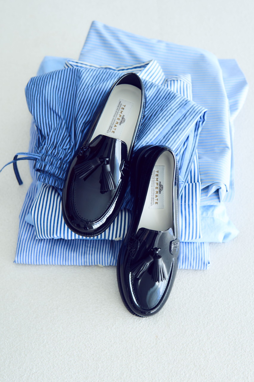 タッセル付きのローファーライクなスリッポンはオケージョンだけでなく普段使いもしやすい優れもの。履きこみが深めなので雨の日に最適なデザイン。