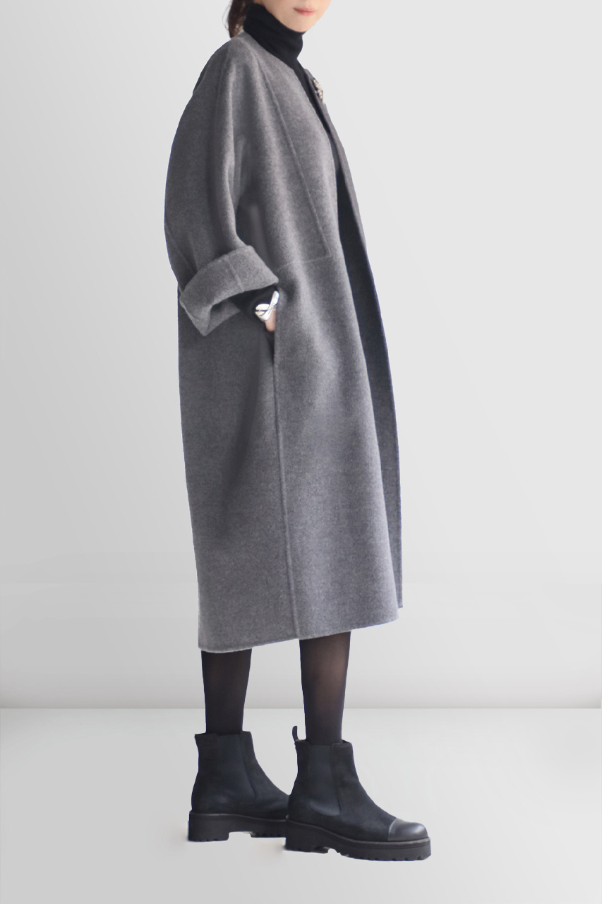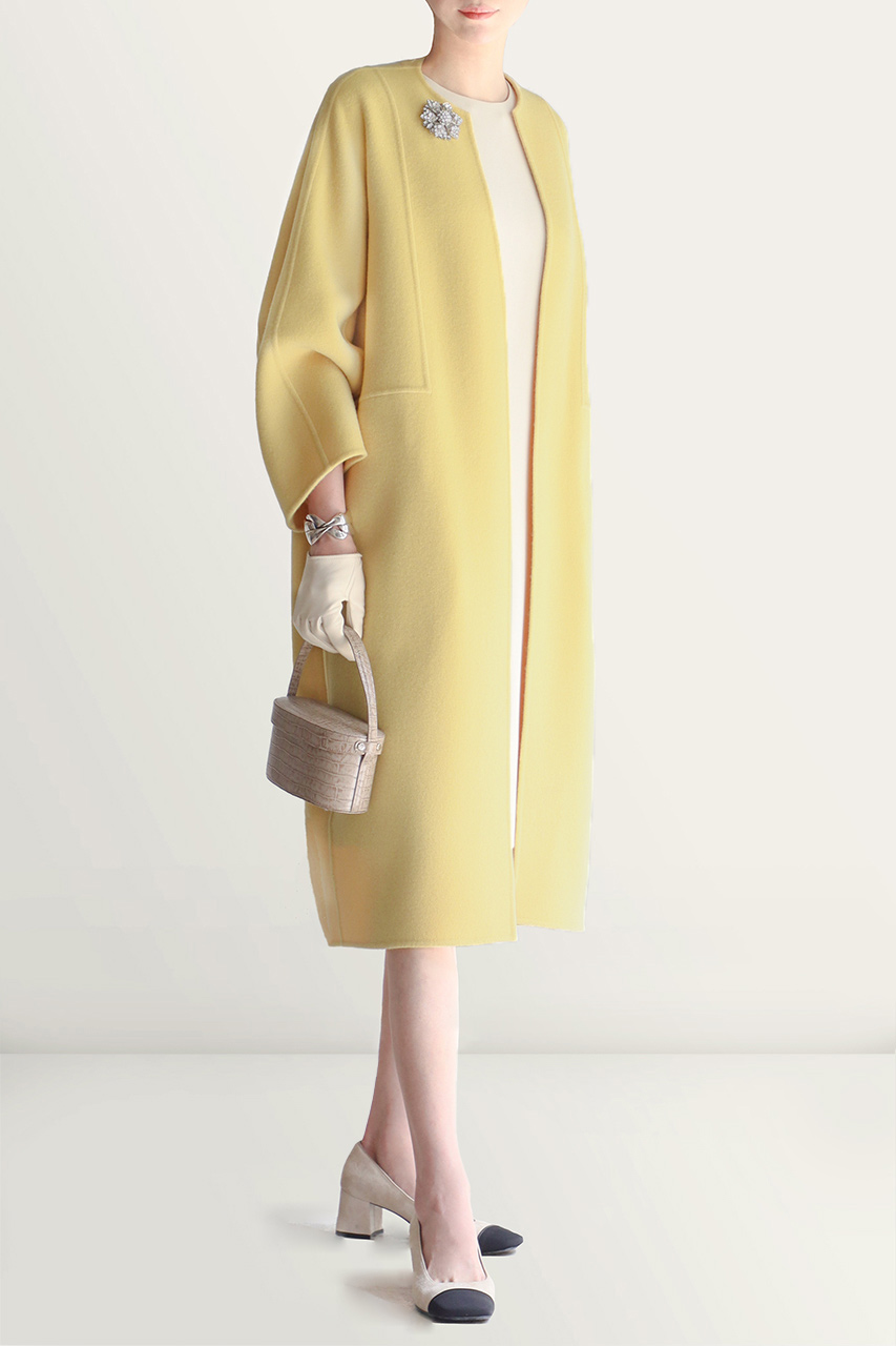 上質ダブルフェイスシリーズ3型目は、羽織るだけでモダンが香るシルエットが美しいコクーンコート。肩こり知らずの軽さと、シンプルな着こなしが洗練される人気のコクーンシルエットは、秋冬のマストアイテム。真冬にも活躍するよう、インナーに厚手のニットを着てももたつかないゆとりを計算。すっきりとしたデザインを生かしながら、手を入れやすいポジションを考慮したサイドポケットにも、いつ何時もスマートでありたいミスリンのこだわりが投影されています。ミディアムグレー、ソフトイエロー、ナチュラルの3色展開。