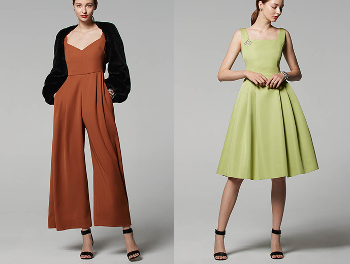 2着目は、いつの時代も変わらない美しいドレスの形を追求した“Eternal Dress”。ウエストを細く、脚を長く、小顔に見える立体的なこだわりのパターンを採用し、カラードレスにも挑戦しやすいシンプルで品のいいデザイン。上品な艶とハリ感が特徴のグログラン織りの素材ですが、ホームクリーニング可能なのでパーティ中もストレスフリー。