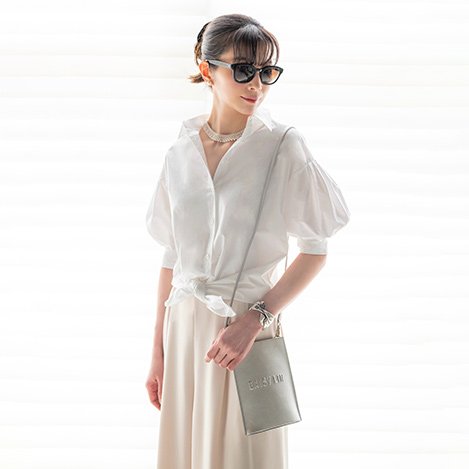 爽やかなホワイトで、上品なパフ袖ブラウス。