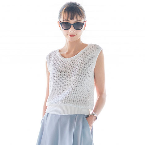 素肌に心地よく、軽やかで涼感のある着心地。上品な編み地と繊細なディティールが、装いに華やかさを添えてくれます。