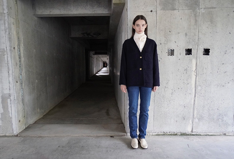 深みのあるネイビーに、ブレードをほんのり濃く仕上げることで立体感を引き出したツイードジャケット。アンティーク調のゴールドボタンがクラシカルなアクセントにきらり。ゆとりのあるシルエットとデザインも限定仕様で、ニットやシャツをインに重ねてもバランスよく決まる。深めのVネックは堅苦しさを抑え、ラフにもきちんとにも対応するほか、アウター感覚で羽織れる着まわし力が魅力。裾のサイドスリットと前後差のあるシルエットが横姿まで美しく演出。コットン素材だから季節を問わず、日常から特別な場面まで幅広く活躍する便利な1着。