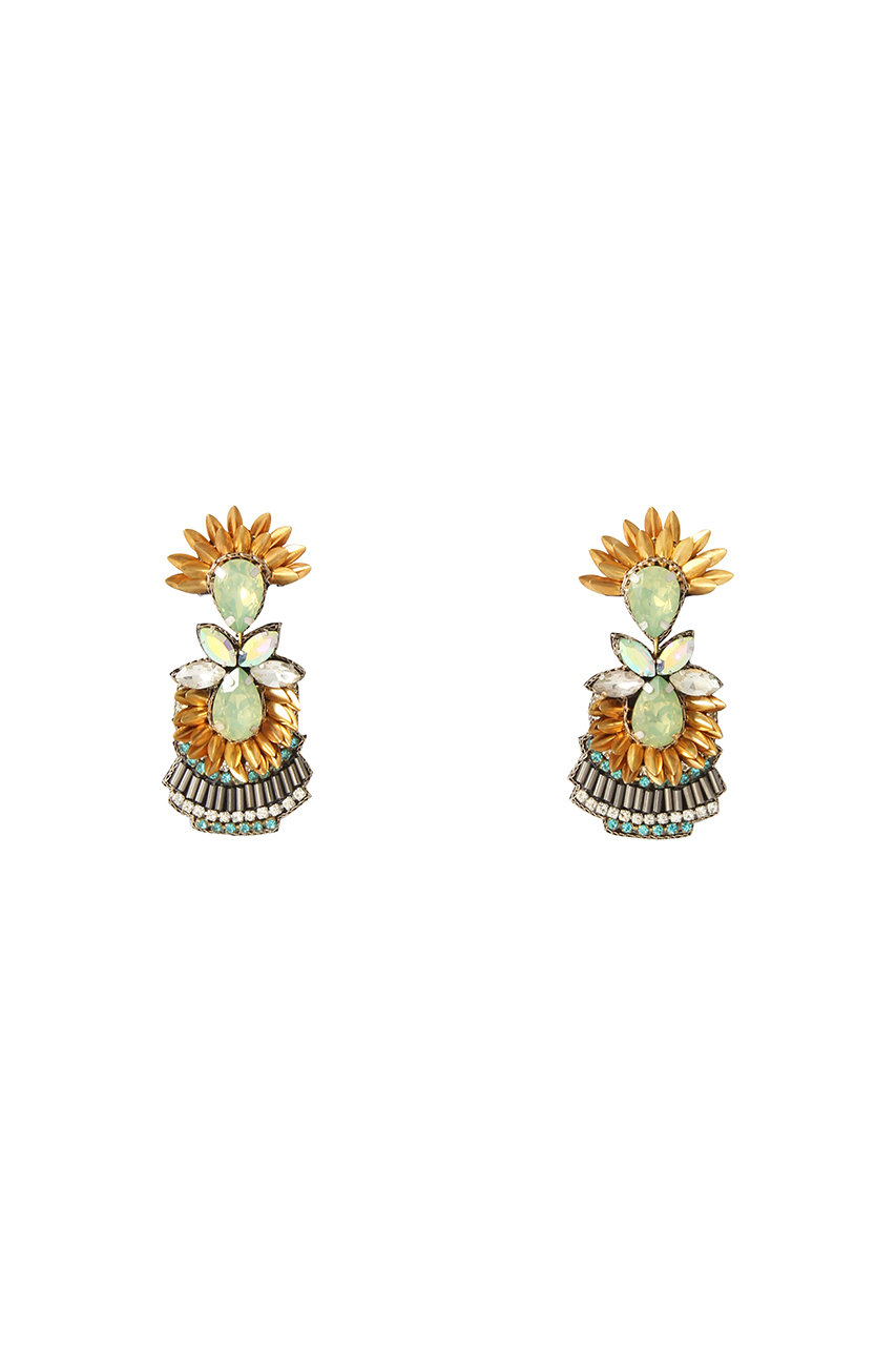 LOOKで合わせているビッグピアスはインドで手作りされているアクセサリーブランド【PSQUARE】からセレクト。世界のハイエンドブティックやクチュールストア、ロンドンのヴィクトリア&アルバート博物館やアメリカのMOMAのミュージアムストアなど取り扱われており、感度の高いショップからの評価もお墨付き。