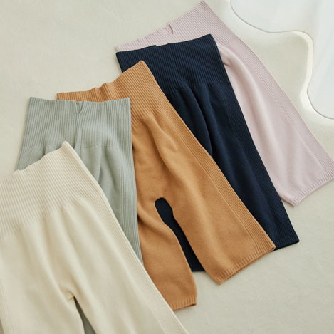 「ネテネ」のウォームパンツは、吸放湿性に優れた素材と、縫い目のない設計で素肌に心地よくフィット。