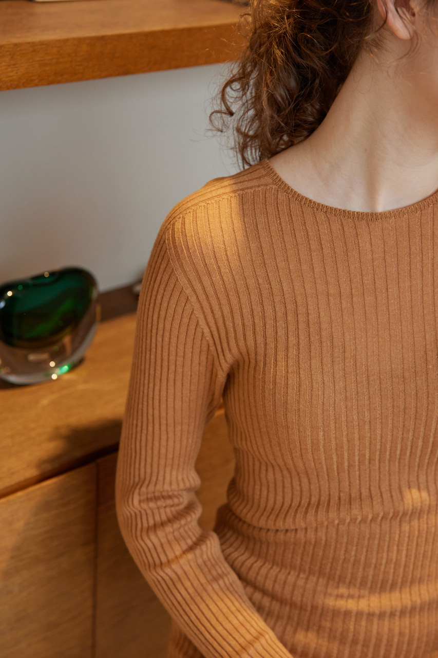 お腹から膝までをしっかりと包み込む“ロングウォームパンツ”と、足元を温める“レッグウォーマー”に。同素材の“コンフィニット長袖クルーネックプルオーバー”を合わせれば、冷えやすい下半身を中心に温め、巡りをサポートしてくれます。