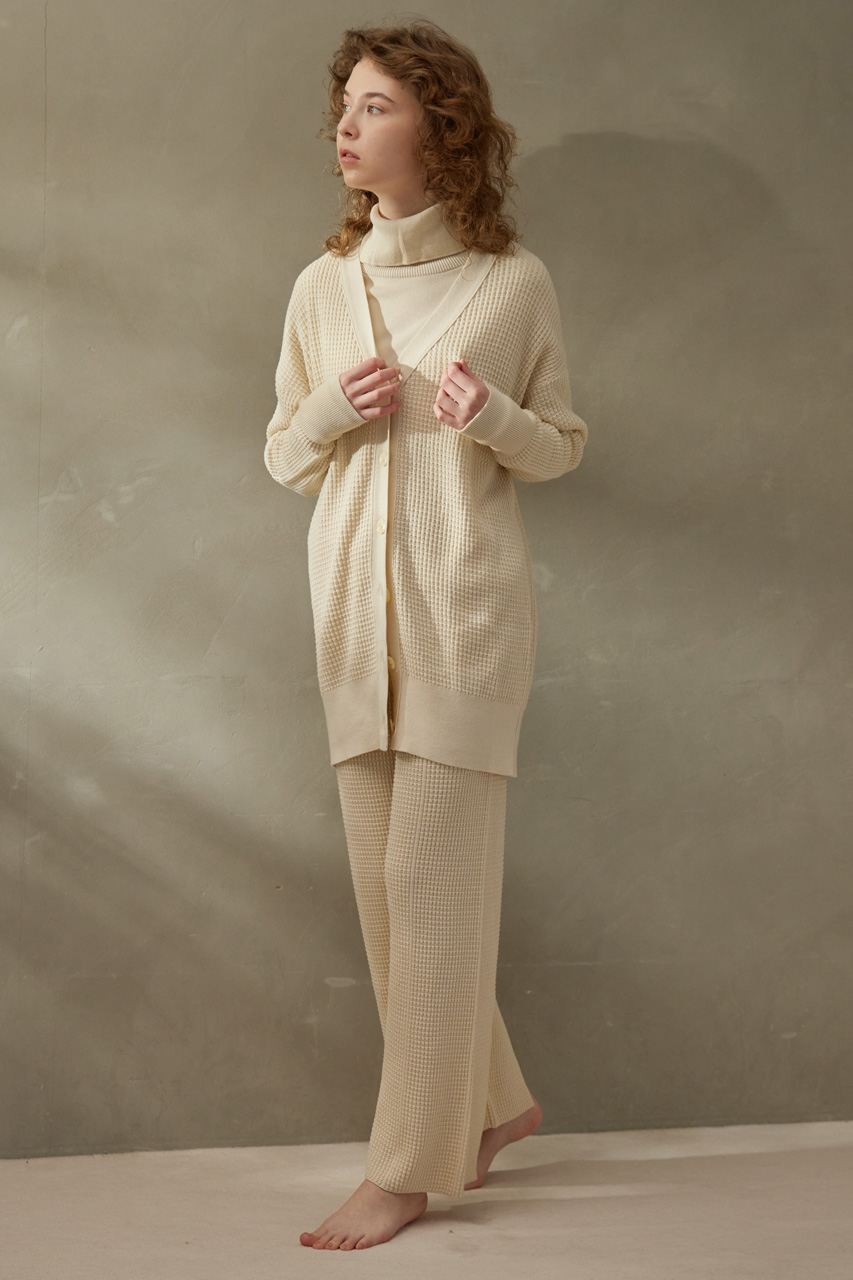 セットアップで着用すれば、おうちの中だけでなくワンマイルウェアとしても活躍する、おしゃれと温活を両立できる万能スタイルです。