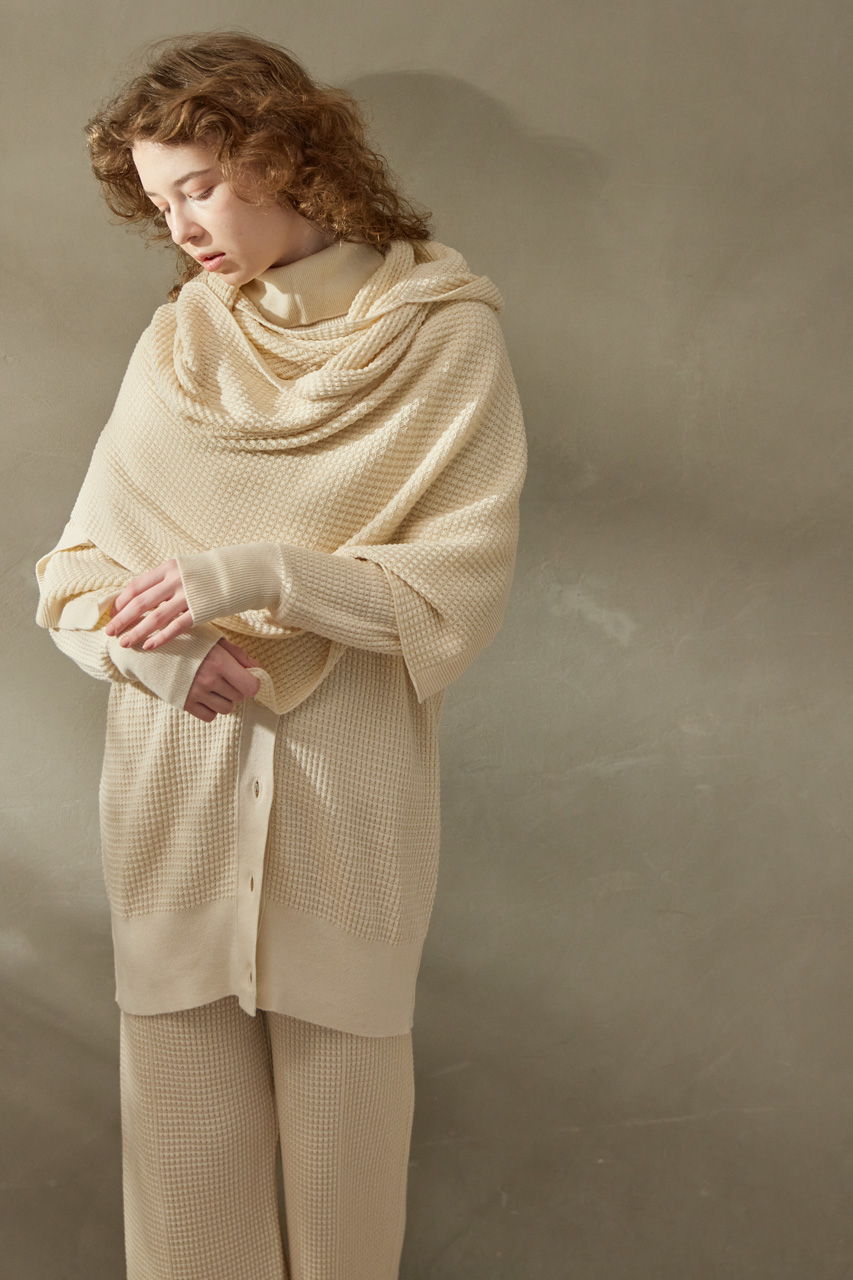 人気のワッフル編みを使用した“パフィーニットシリーズ”のコーディネートです。