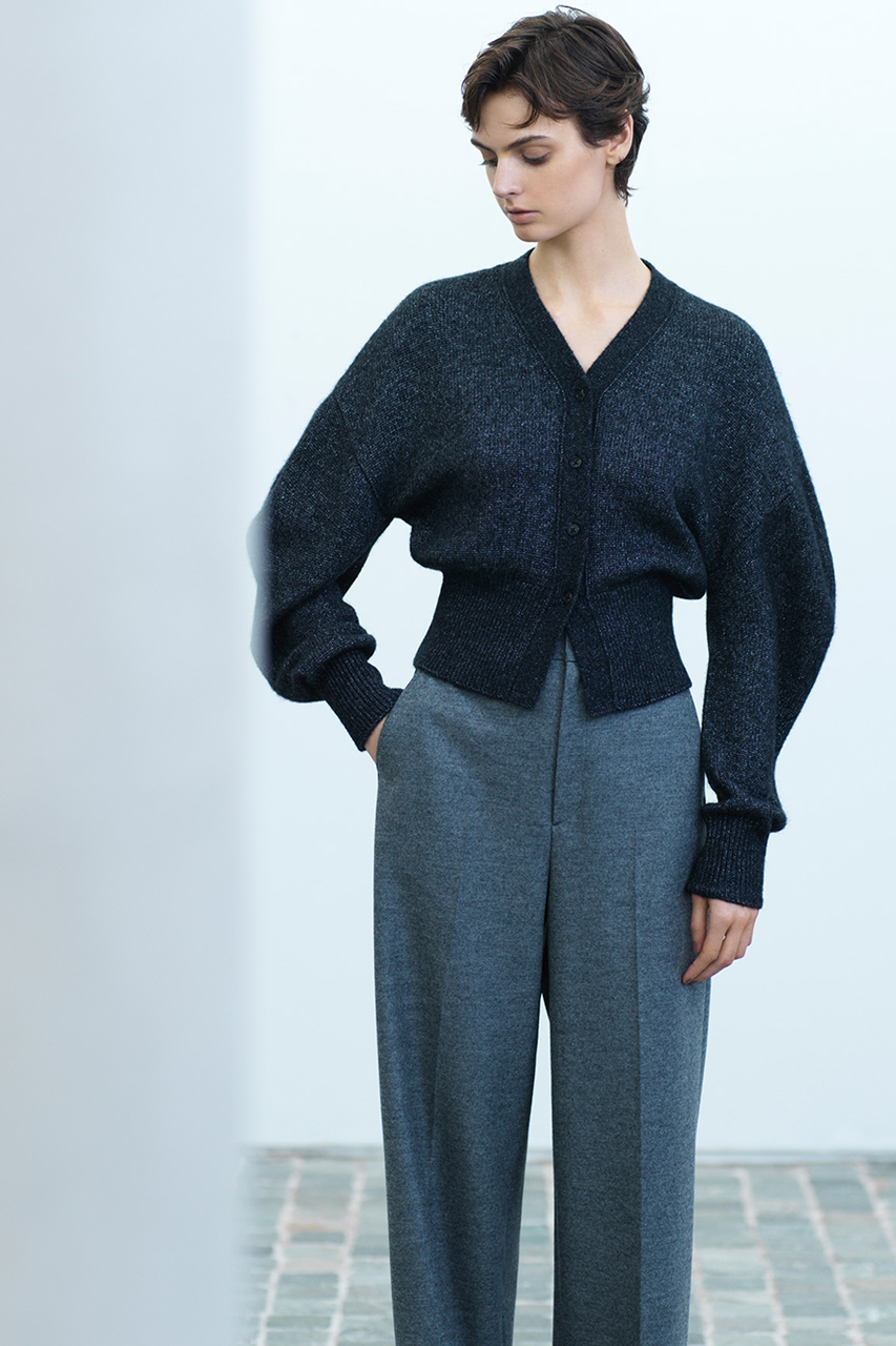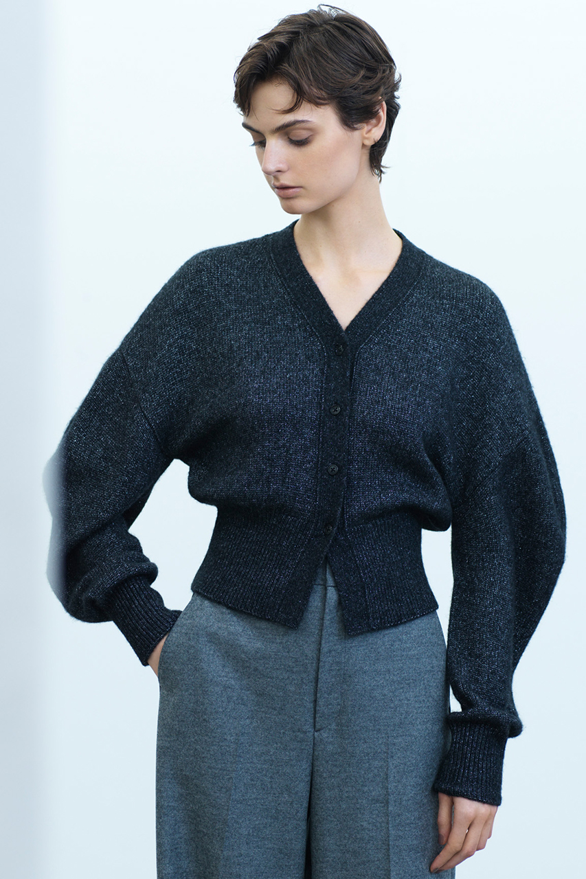 ほのかなラメの輝きが、大人の心をときめかせるニットカーディガン