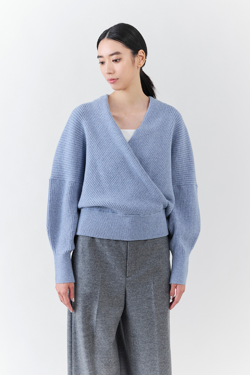 バルキーなカシュクールデザインでこなれた大人の魅力を放つニット