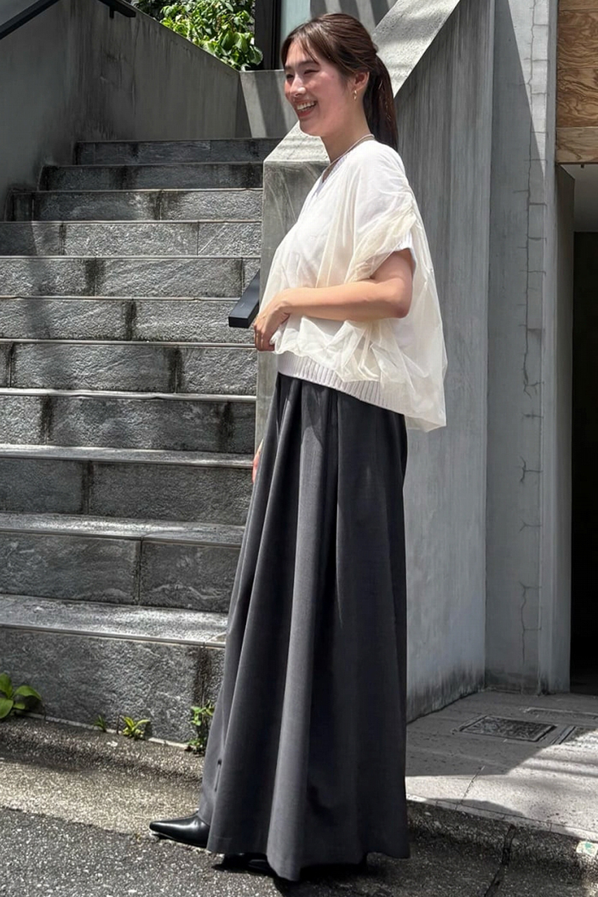 ふんわりと広がる同色のチュールが幻想的な上品さのある着こなしを叶えます。