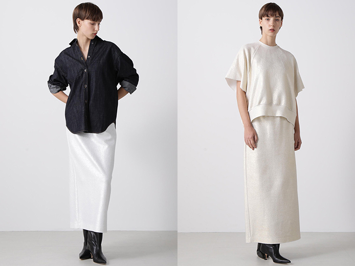 箔プリントの質感を活かしたミニマルなアイラインシルエットスカート。