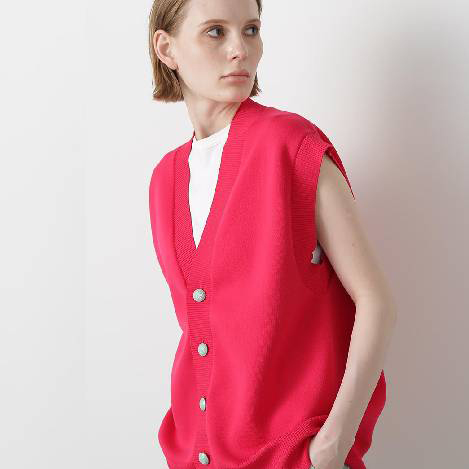 肩を覆うオーバー感はスリーブレスに着やすく華奢感のある着こなしになります。