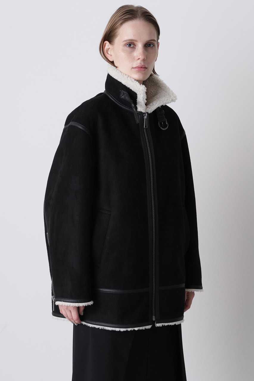 マットなスエードとボアをボンディングした素材は、リアルムートンのような奥行きある表情を演出。