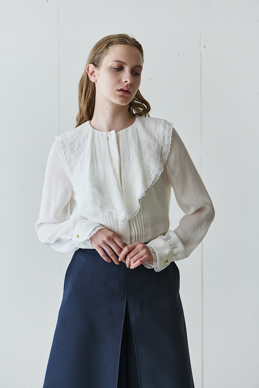 ハンサムコーデに甘さをプラスしたり、ドレッシーなオケージョンスタイルとして着こなしたり。大人の秋冬スタイリングに活躍してくれるのが、甘さと鮮度をあわせ持ったリュクスなフリルブラウス。たっぷりのフリルなのに子供っぽくならないボリューム感の鍵は、「シルクに最も近い合繊」とも言われるトリアセテート素材の繊細な揺れ感があってこそ。