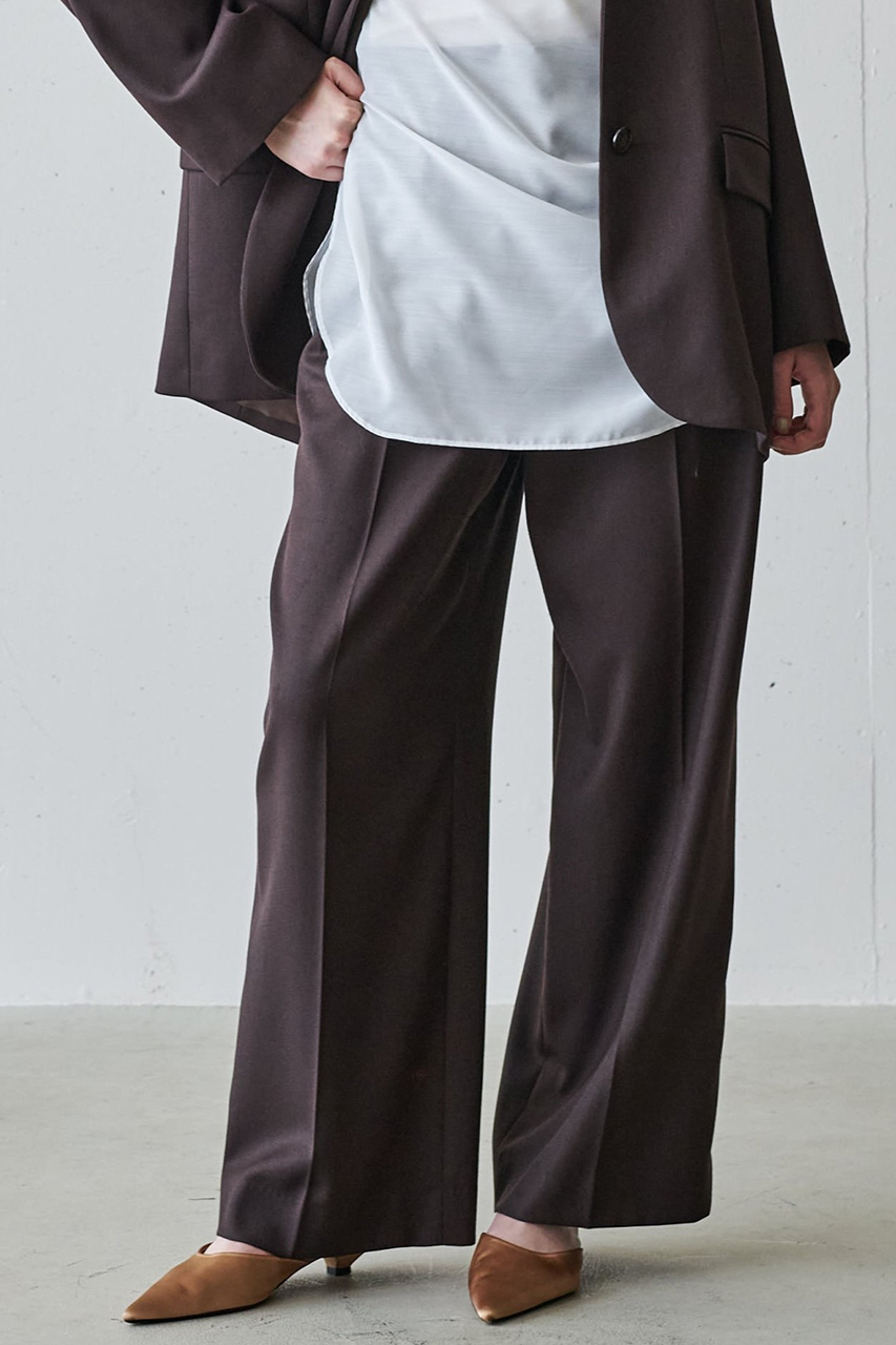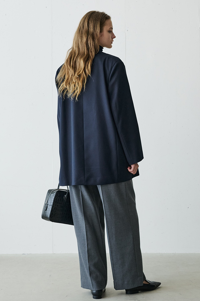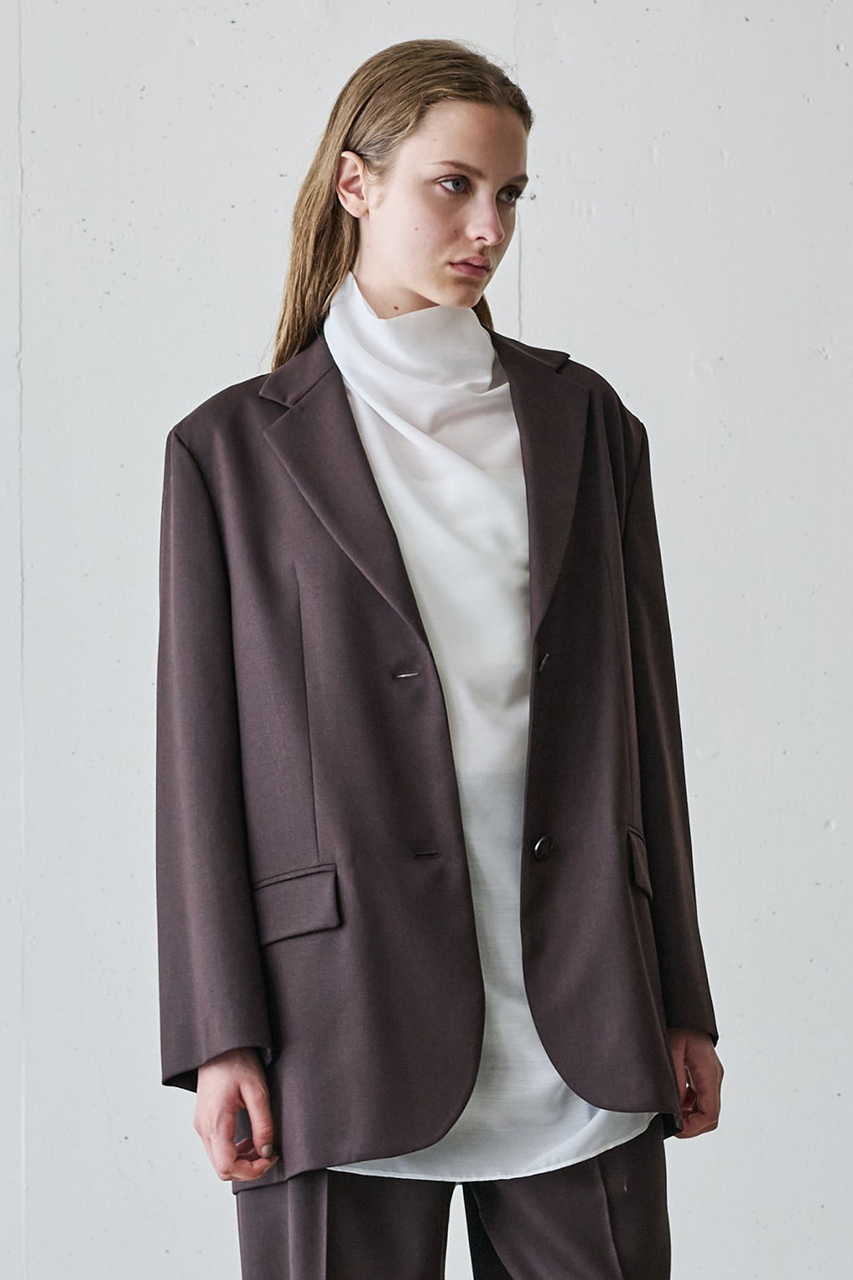 端正なイメージを保ちつつ、今年らしいこなれ感やモードな遊び心をプラスできるオーバーサイズのテーラードジャケット。オーストラリア産のヴァージンウールSUPER100とヴィスコースをブレンドし、梳毛糸に仕立てた生地は、メンズライクでクラシカルな風合いが魅力。同素材のワイドパンツとのセットアップもおすすめ。