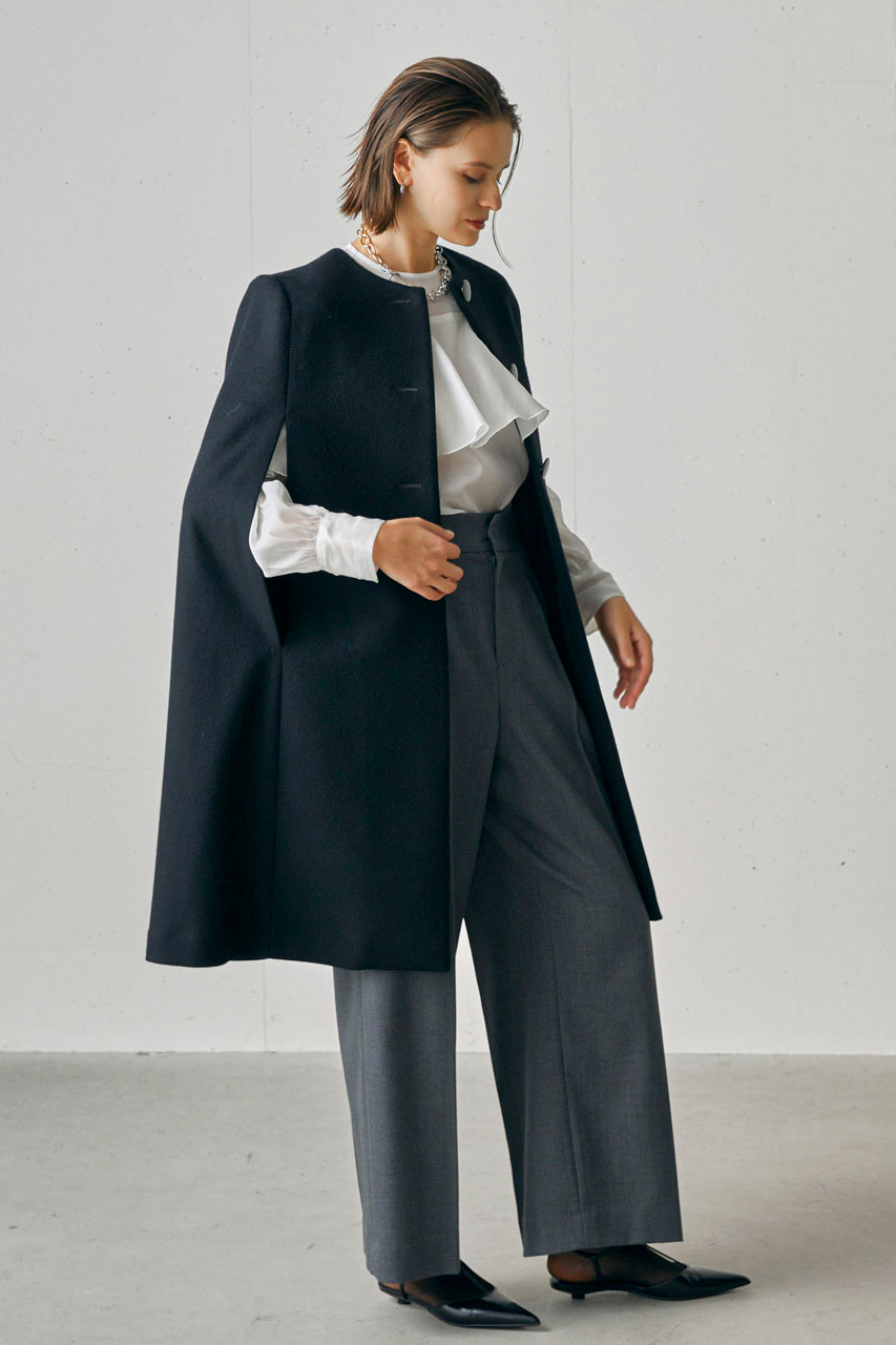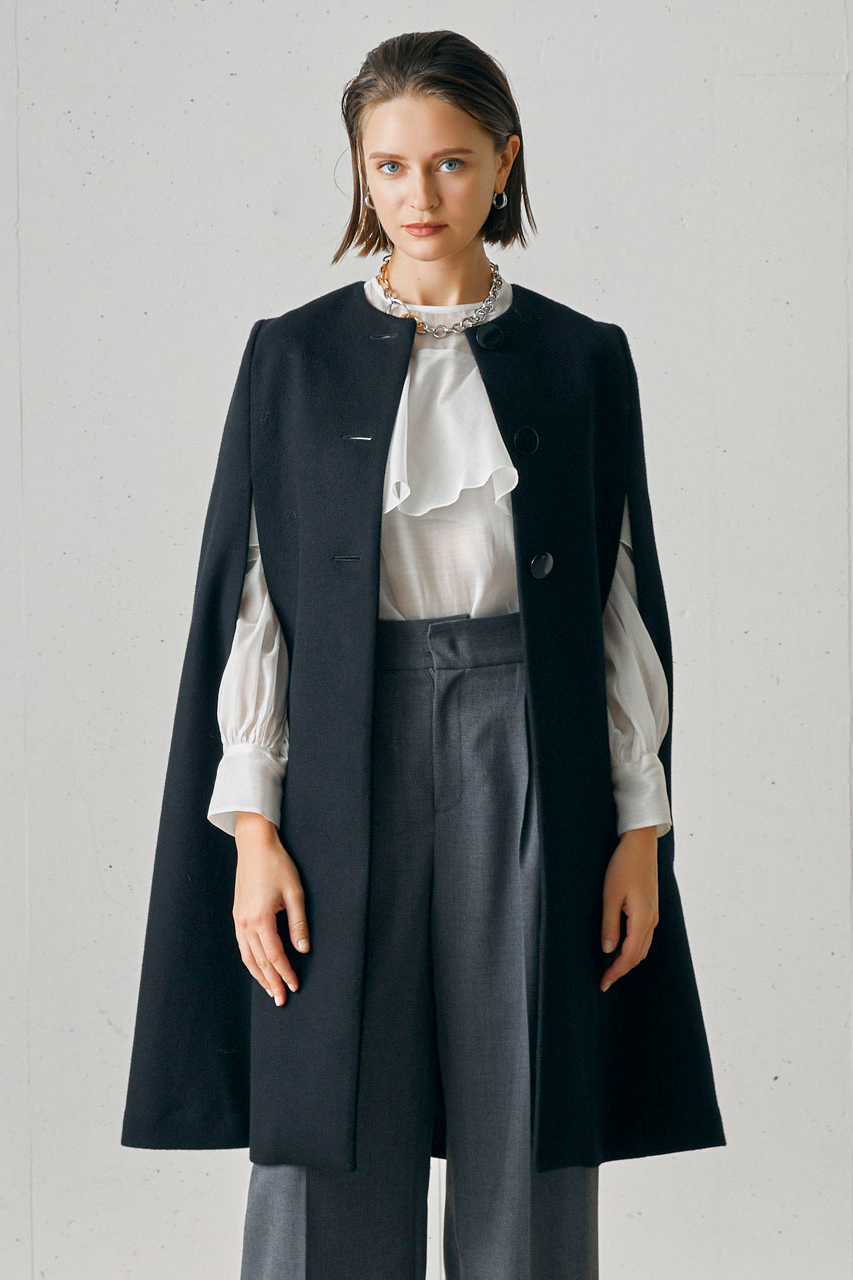 70年代風の品格あるクラシックデザインを再現した、すらりとスマートなケープコート。