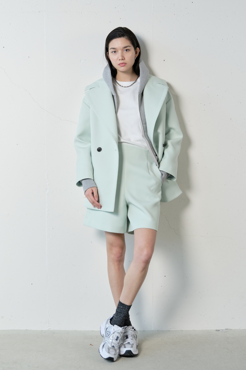 ミントやライムなどのニュアンスカラーがスタイリングに新鮮さを加え、動きのあるシルエットが都会的なバランスを整える。