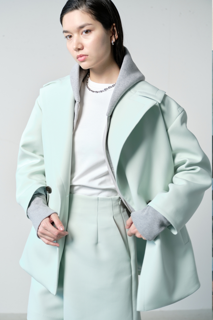 直線的なシルエットと透明感のある色が、春の装いを知的にアップデートする。