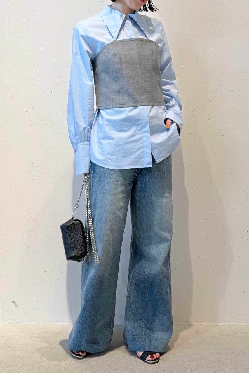 甘さに寄せず、構築的なシルエットで整えることで、カラーはより都会的に映える。