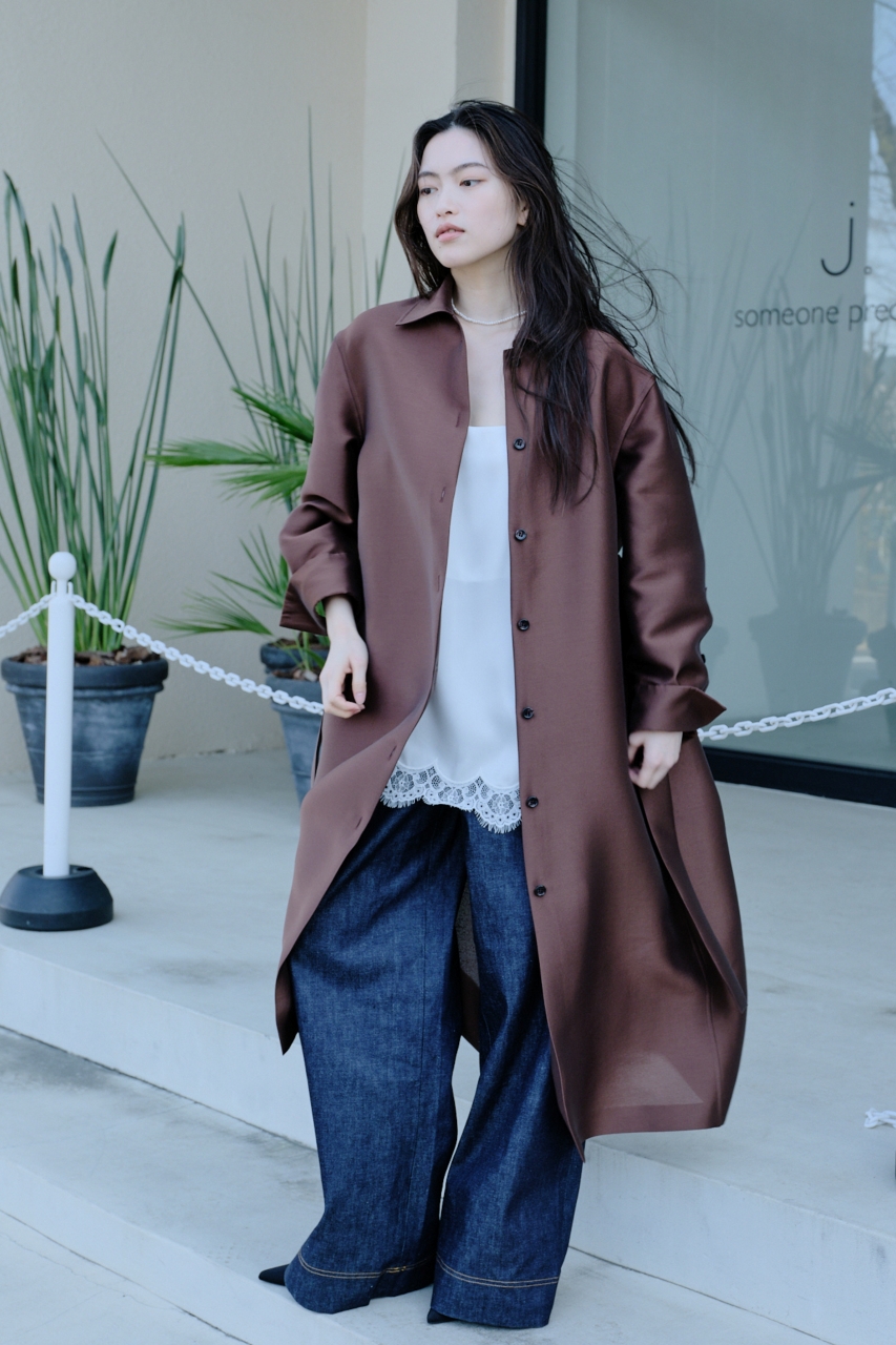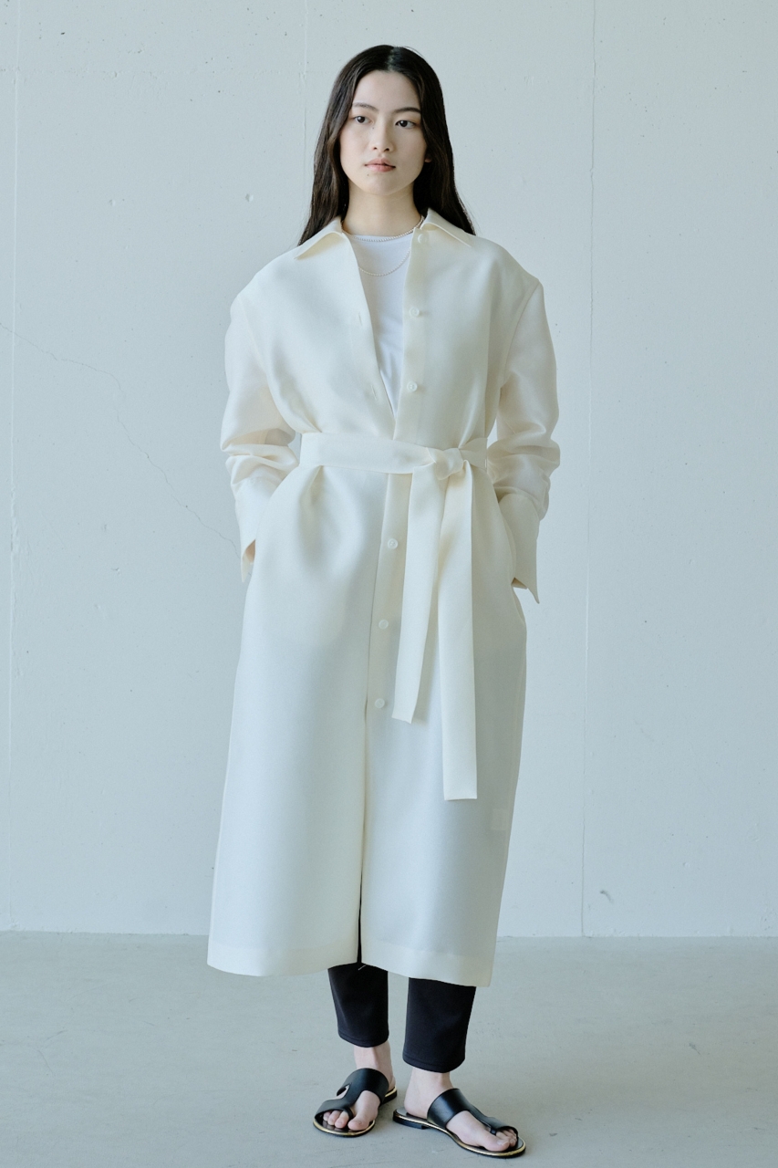 端正なフォルムのドレスコートは、さらりと羽織るだけで装いの印象を引き上げる存在。