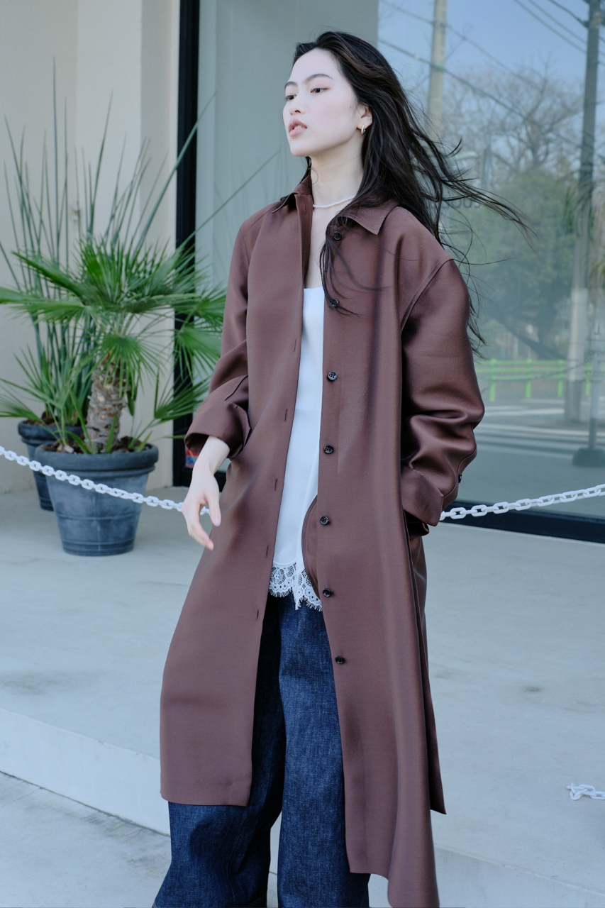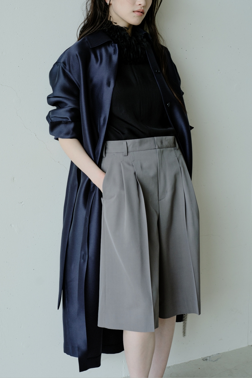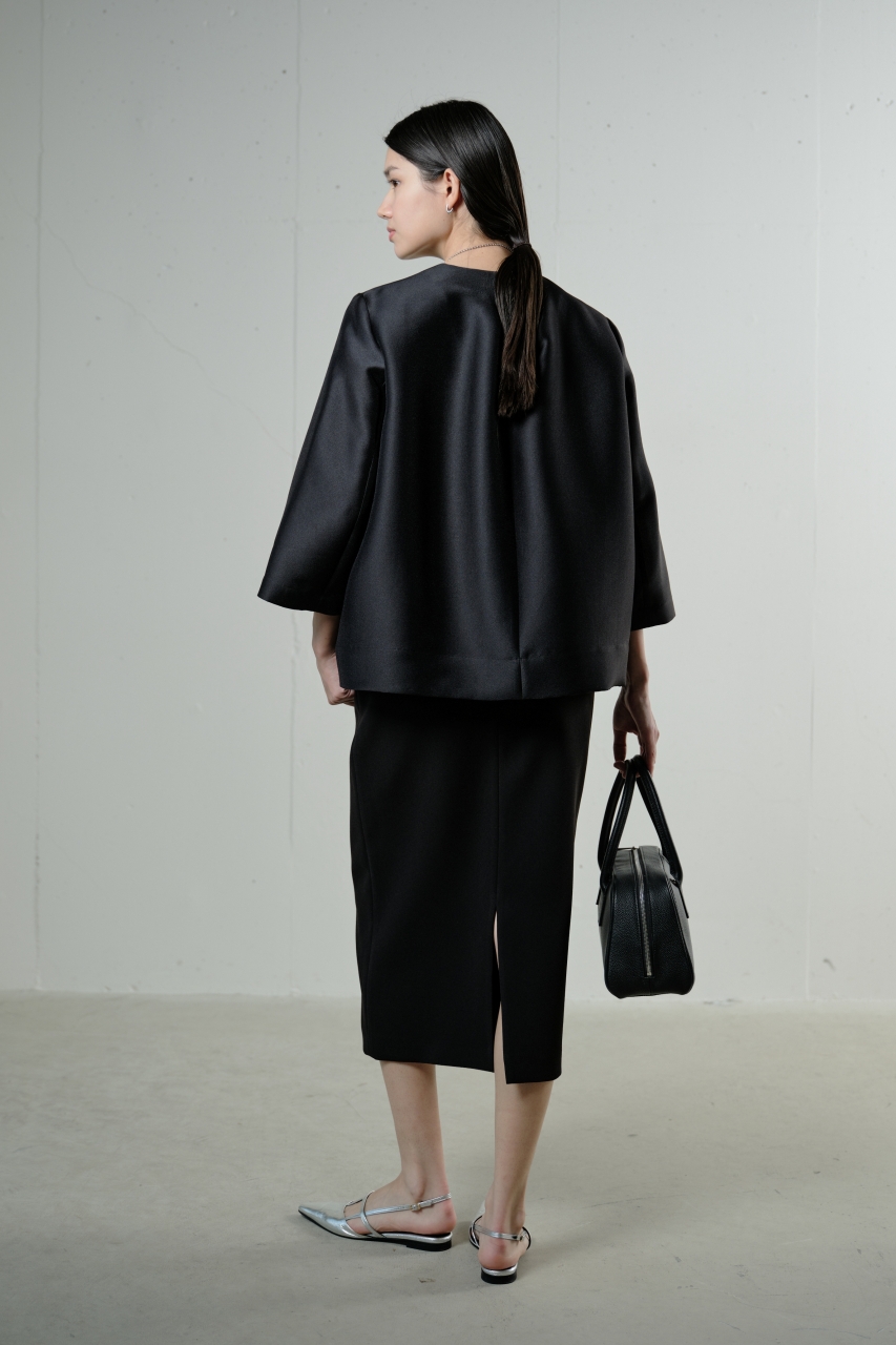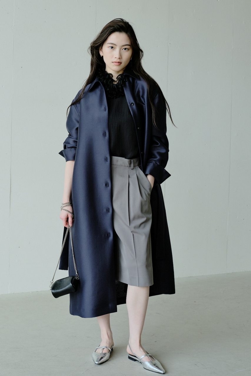 シャープになりすぎない柔らかなハリが、モードな佇まいの中に女性らしいニュアンスを添えてくれます。