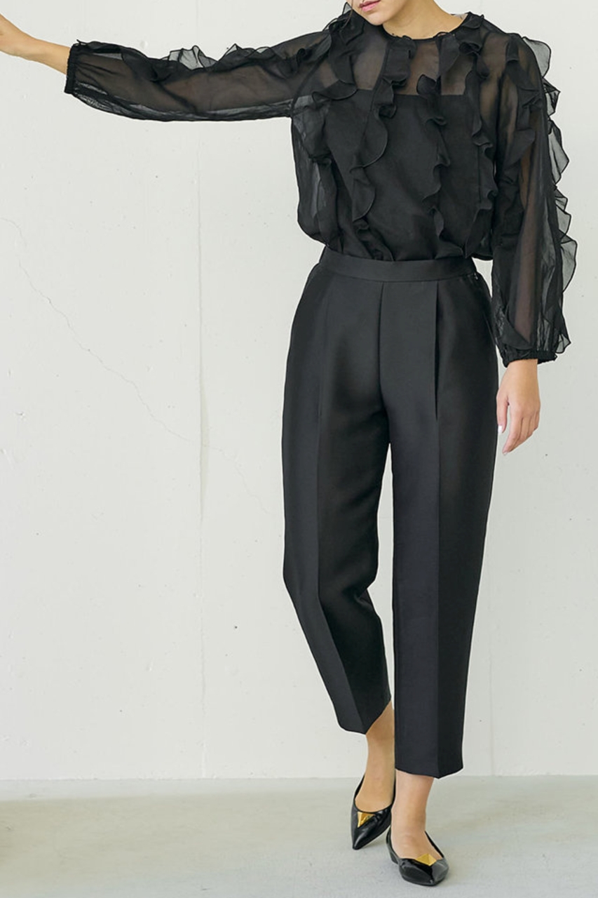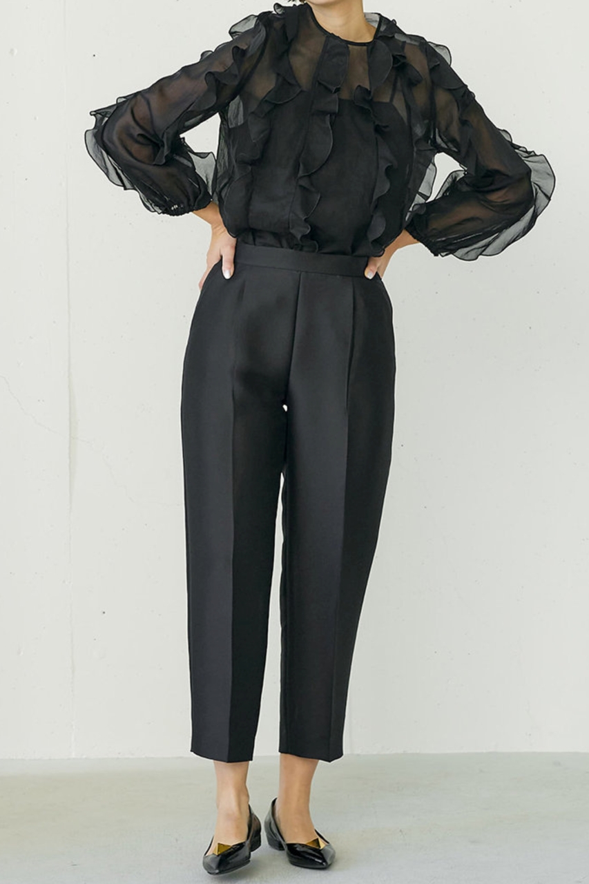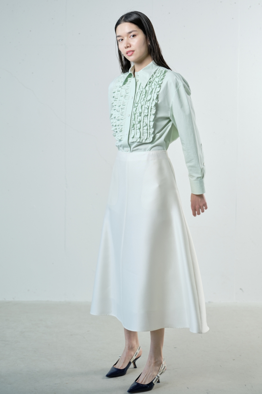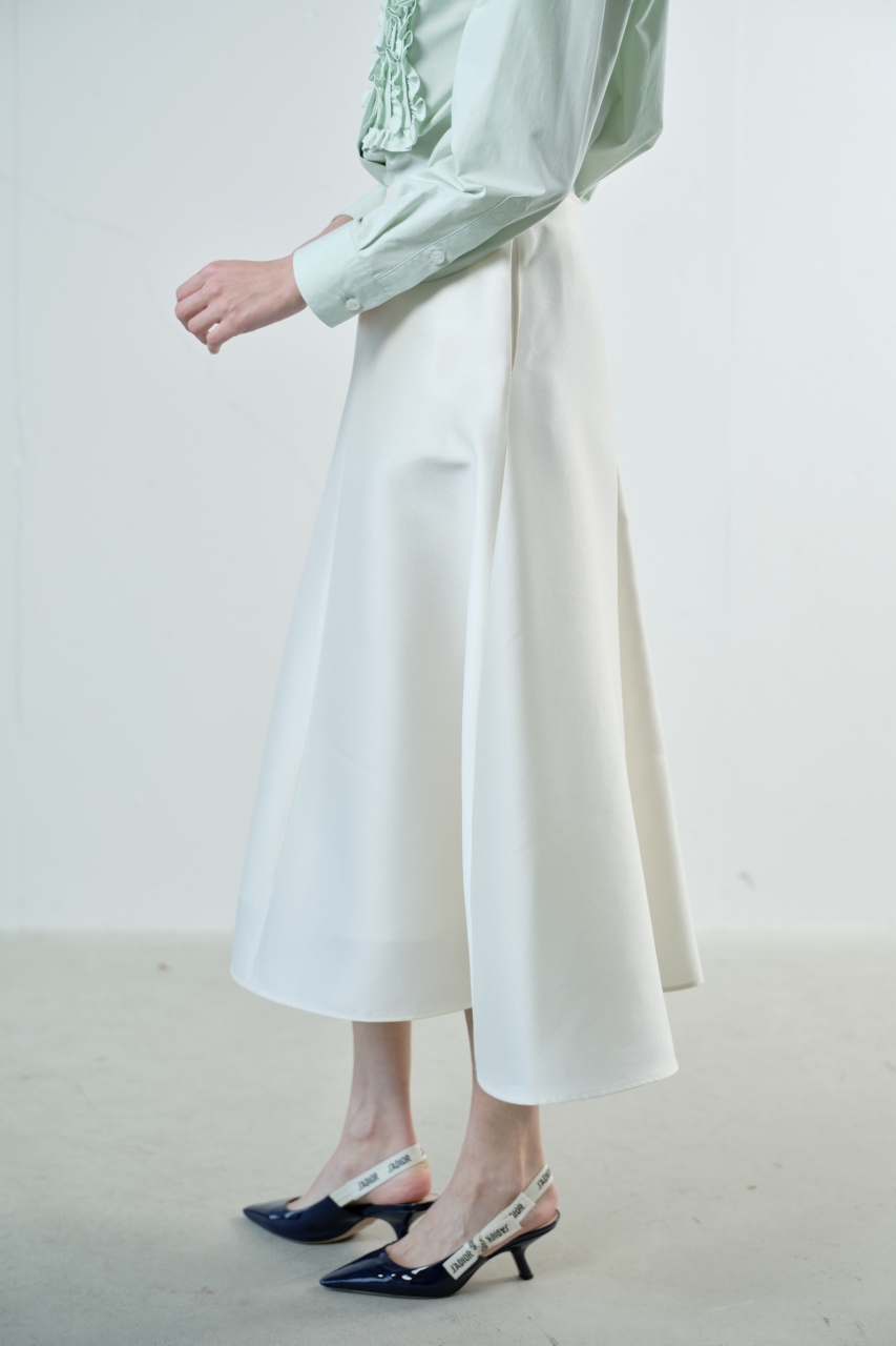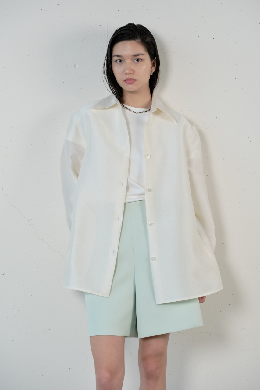 シャープになりすぎない柔らかなハリが、モードな佇まいの中に女性らしいニュアンスを添えてくれます。