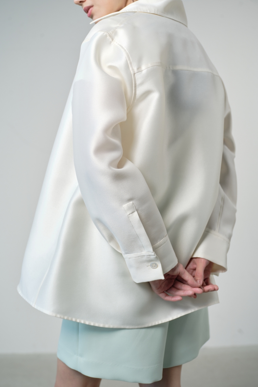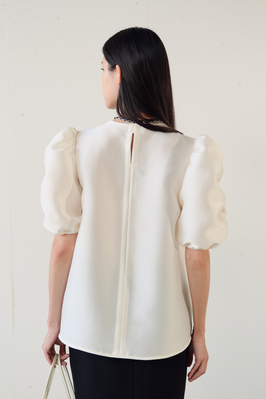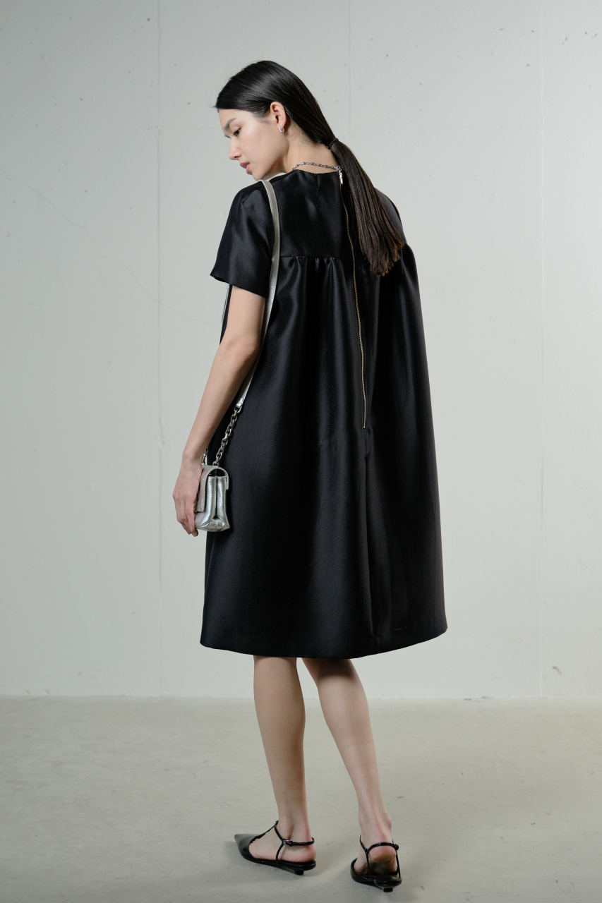 軽さとハリを兼ね備えたこの素材が、構築的なシルエットを美しく際立たせます。