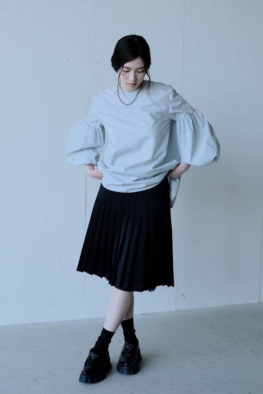 シンプルなボトムに合わせるだけで、自然と着映えが完成します。