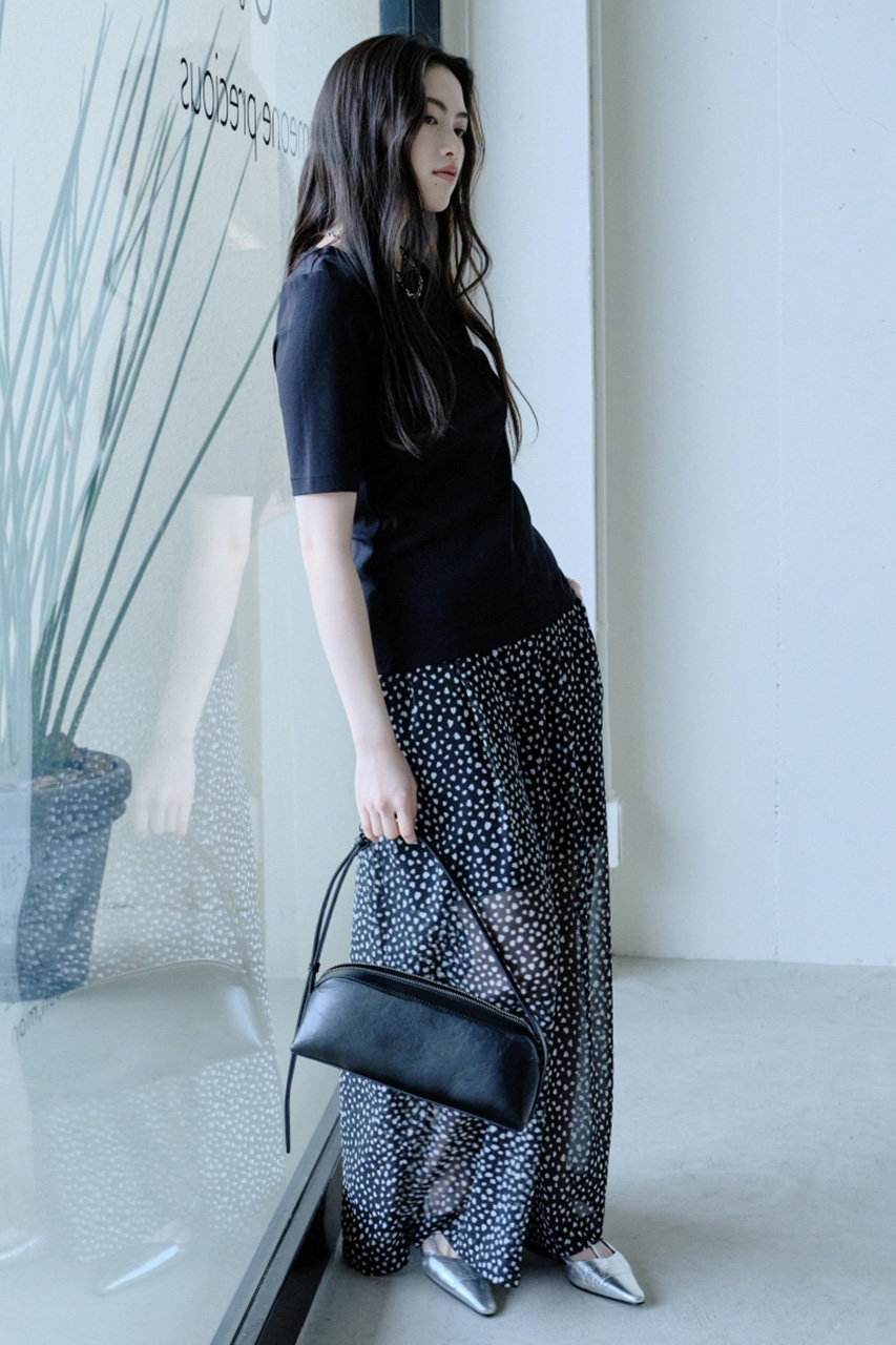 シンプルなトップスに合わせるだけで、スタイルが完成する。