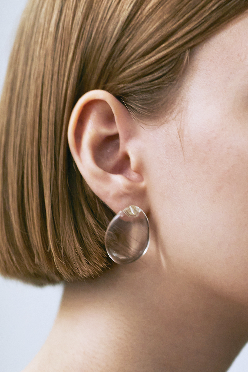薄曇りの空から淡くさす日差しをイメージしたガラスピアス。顔周りのアクセントになってくれるサイズ感も◎。